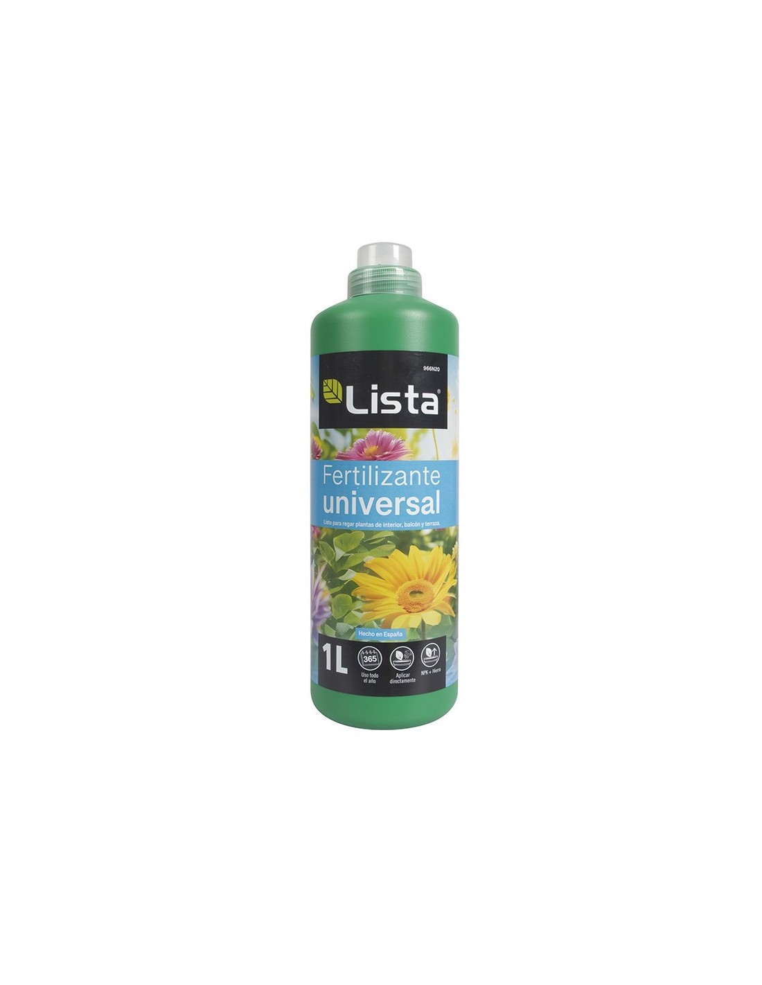 Abono líquido LISTA Universal Listo para regar plantas de interior y exterior. Nutre y fortalece todo tipo de plantas gracias a su fórmula equilibrada. Aporta los nutrientes necesarios y refuerza la resistencia a enfermedades.. 1 litro.
