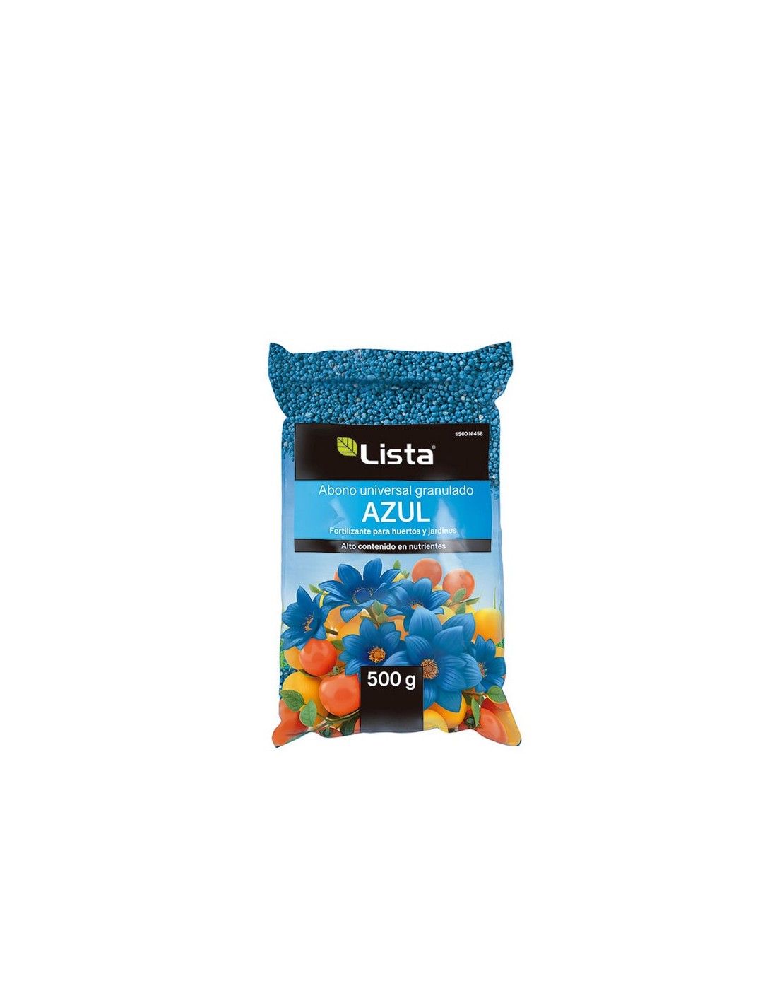 Abono universal granulado LISTA Azul Diseñado para aportaciones de fertilizante en horticultura y jardinería. Altamente soluble, de rápido aprovechamiento por parte de la planta una vez aplicado al suelo. Prácticamente exento de cloro y formulado con potasio de alta calidad. 500 gr.