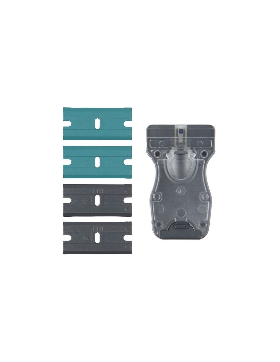 Rascador superficies delicadas WOLFCRAFT Cuchillas de plástico utilizables por ambos lados para superficies particularmente delicadas. 2 cuchillas de plástico con dureza dura. 2 cuchillas de plástico con dureza media. Uso en barniz de coches, superficie de madera. 5 piezas.