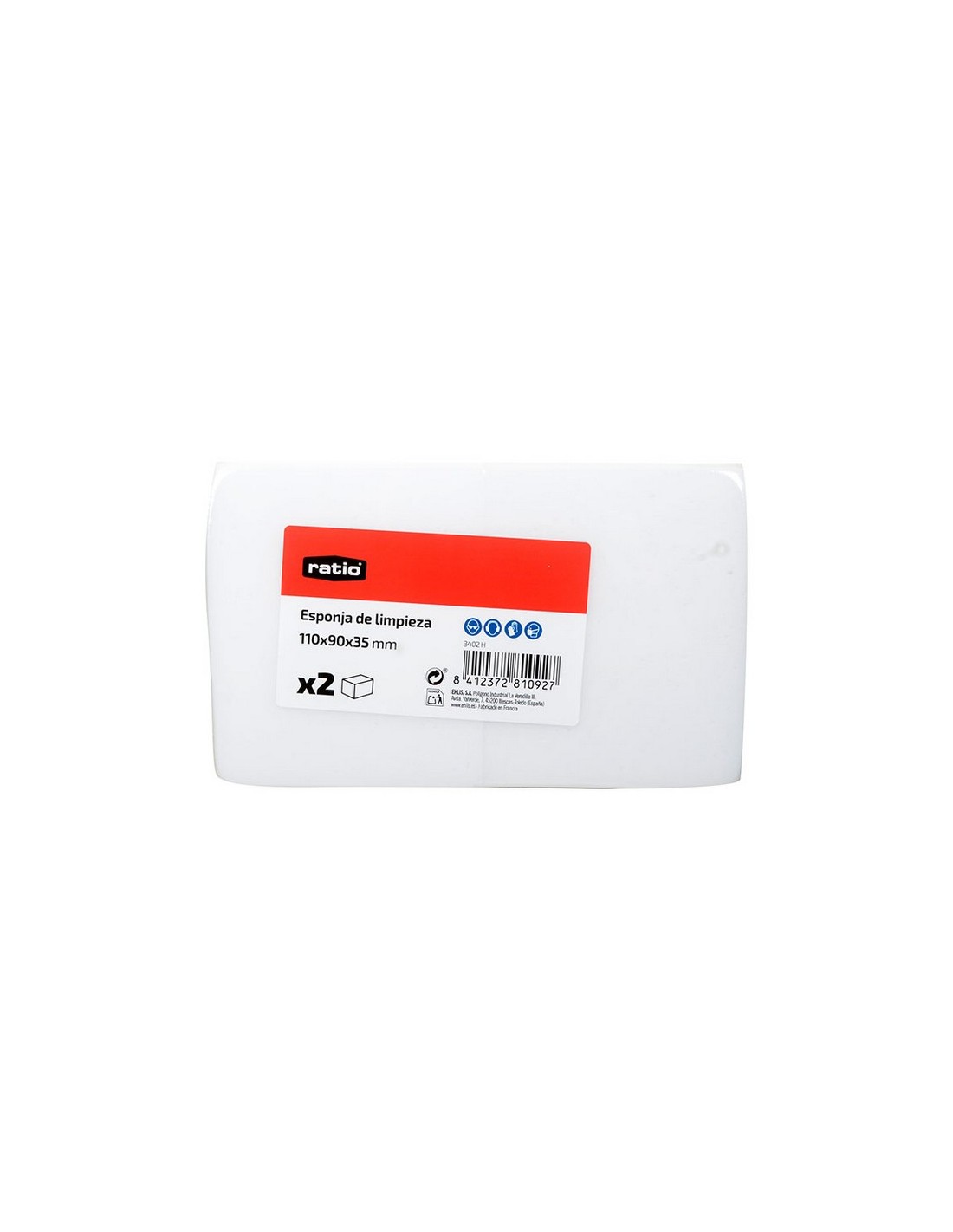 Esponja de limpieza RATIO Borrador elimina manchas (juego 2 piezas). Ligeramente abrasiva elimina las manchas sin dañar la superficie. Ligeramente humedecida, se puede utilizar sobre cualquier superficie lisa. Composición: Resina de melamina. Peso: 2 gramos. Color blanco. Densidad: 9 kg/m3. Absorción: Muy buena. Resistencia a la torsión: >210 ka. Usar con agualimpia, no requiere aditivos. Jgo 2 piezas. 110x90x35 mm.