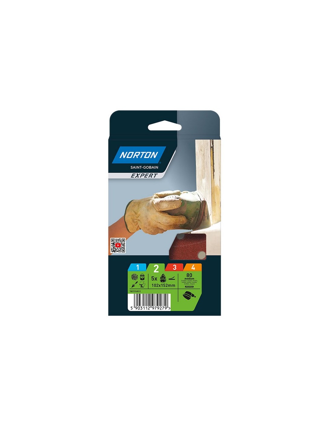 Patín abrasivo lijadora delta NORTON Expert Autoadherente. Óxido de aluminio. Juego 5 unidades. 102x152 mm. Grano 80. 5 unid.