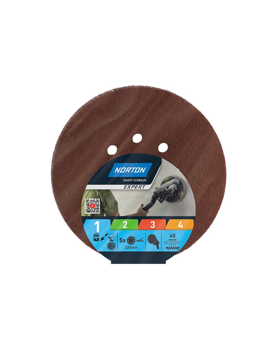 Disco abrasivo lijadora excéntrica NORTON Expert Autoadherente. Óxido de aluminio. Juego 5 unidades. ø 225 mm. Grano 40. 5 unid.