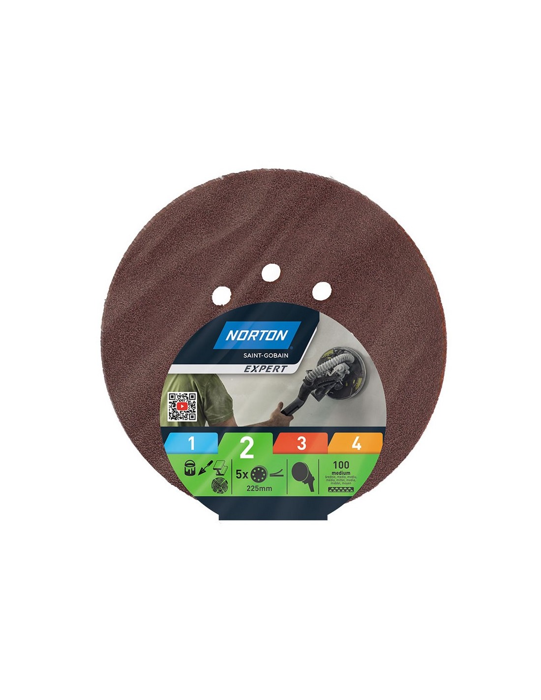 Disco abrasivo lijadora excéntrica NORTON Expert Autoadherente. Óxido de aluminio. Juego 5 unidades. ø 225 mm. Grano 100. 5 unid.