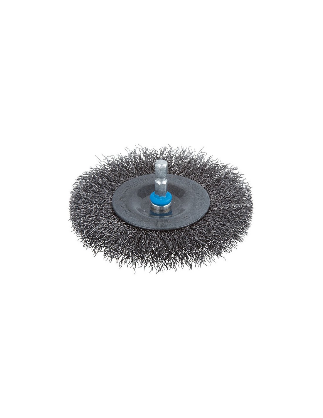 Cepillo abrasivo circular para taladro WOLFCRAFT Alambre acero ondulado. Para metal y chapa. Vástago hexagonal SW 6,35 mm (1/4"). ø 100 mm.