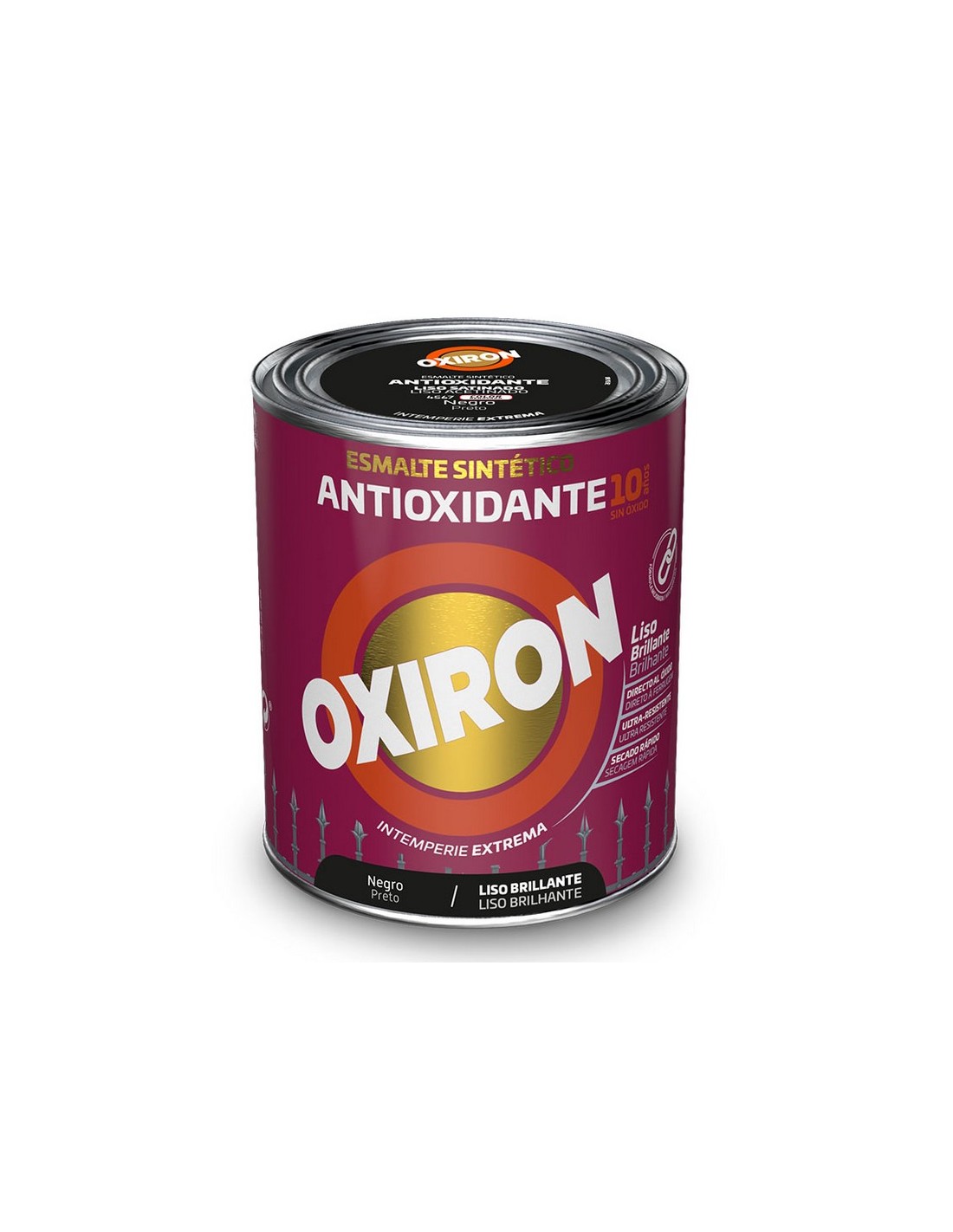 Esmalte sintético liso OXIRON Antioxidante Secado rápido. Aplicación directa sobre acero y óxido. No necesita imprimación. Alto brillo. Gran adherencia, dureza y resistencia. Repintar a partir de 2 h. 750 ml. Negro. Brillante.