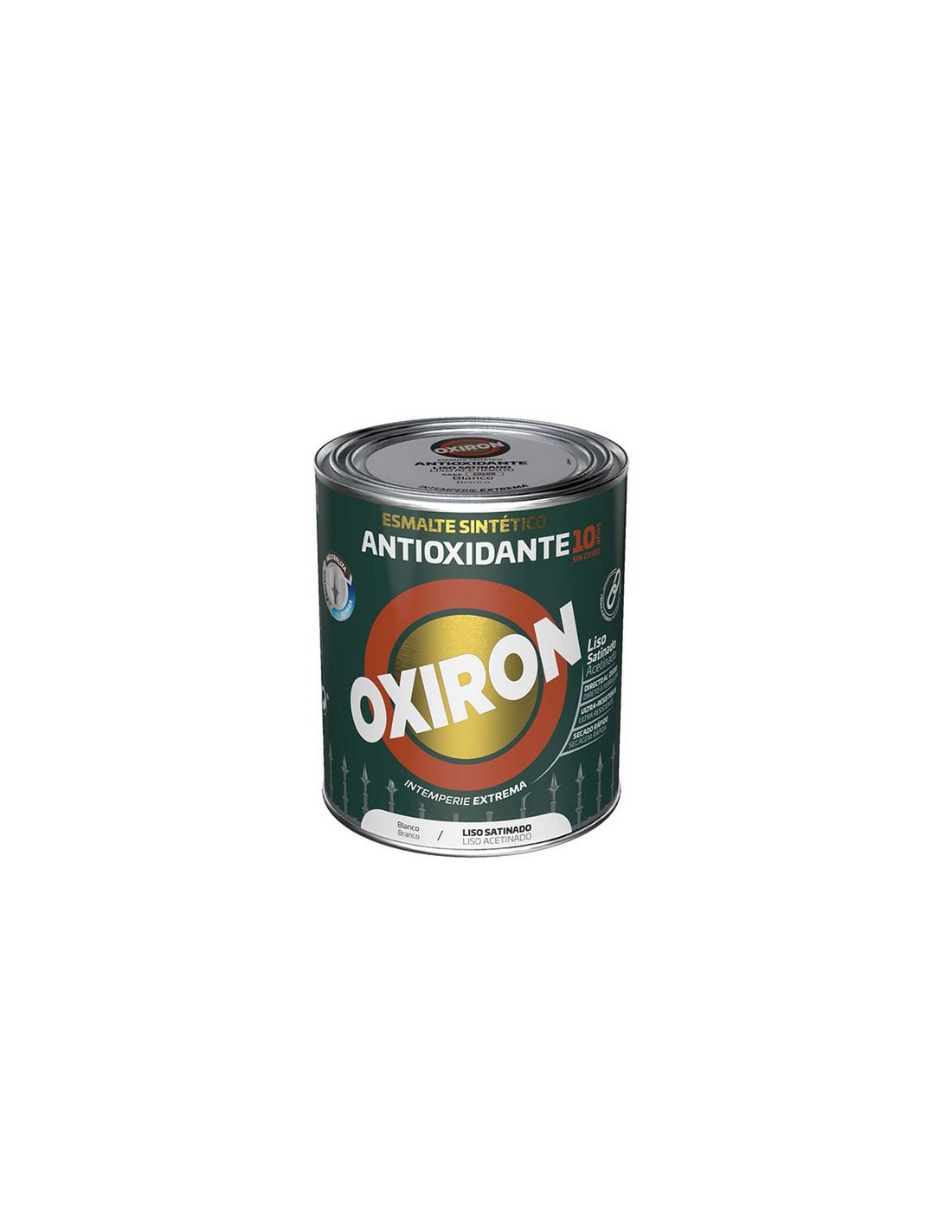 Esmalte antioxidante sintético OXIRON Liso Secado rápido. Aplicación directa sobre acero y óxido. No necesita imprimación. Alto brillo. Gran adherencia, dureza y resistencia. Repintar a partir de 2 h. 250 ml o 750 ml. Blanco. Satinado. 250 ml.