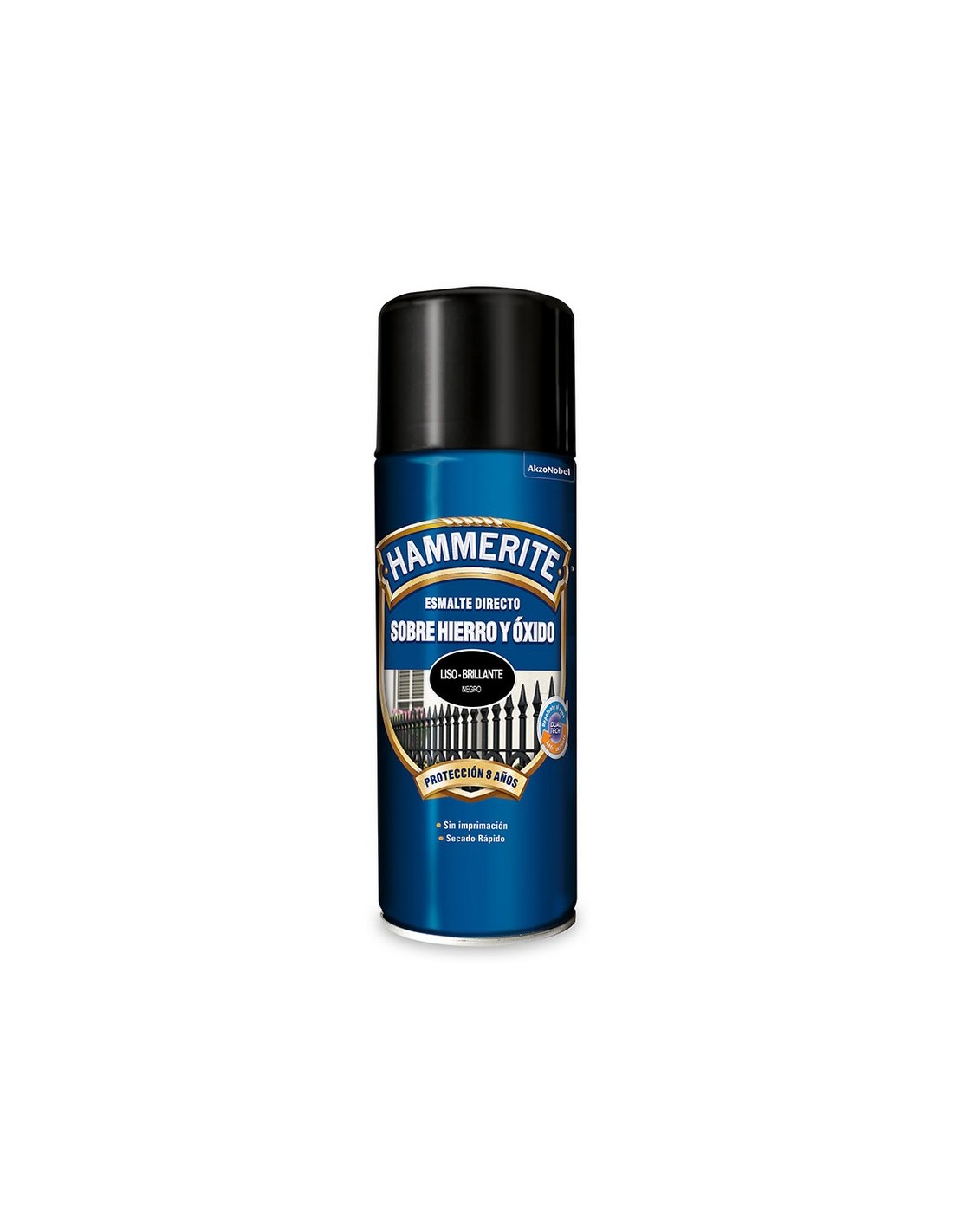 Spray esmalte brillante HAMMERITE Esmalte de aplicación directa 3 en 1: ofrece imprimación, protección antioxidante y acabado decorativo. Negro. 400 ml.