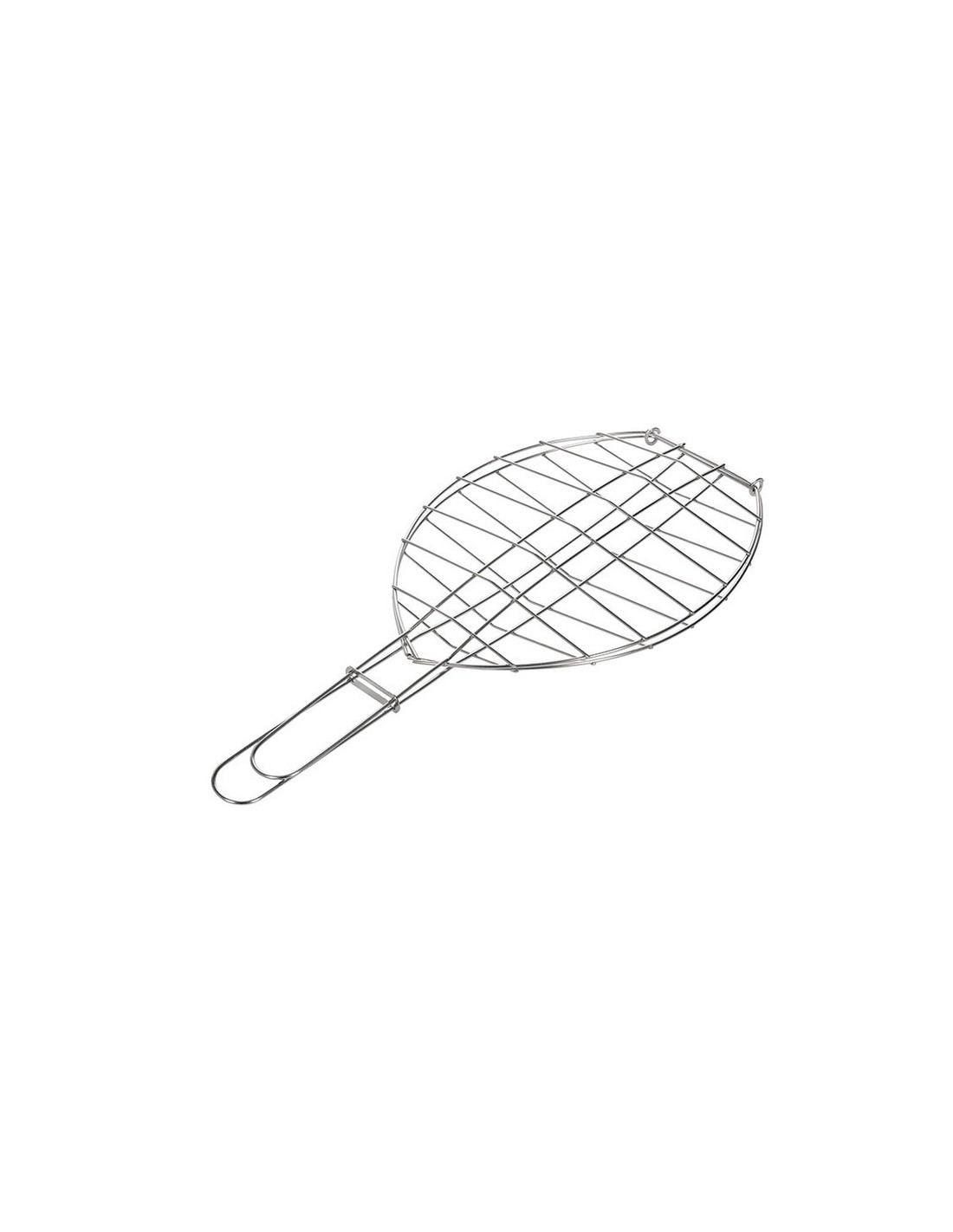 Parrilla rodaballo inox Parrilla doble abombada con forma de pescado que permite la cocción cómoda y segura de piezas enteras de pescado. Fabricada 100% en acero inox 18/8 electropúlido. Estructura muy estable y resistente gracias al grueso del acero inox (2,5-3 mm.) y la poca separación existente entre varillas. 65x30x5 cm.