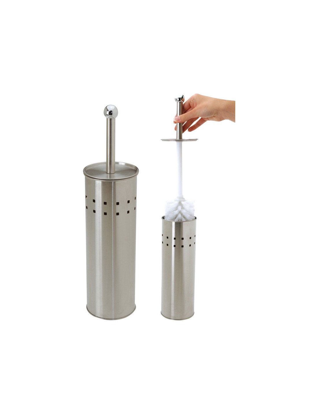 Escobilla WC. Soporte acero inoxidable con tapa, la escobilla queda oculta. Soporte ø 9xh.29 cm.\r\nEscobilla altura 39 cm.