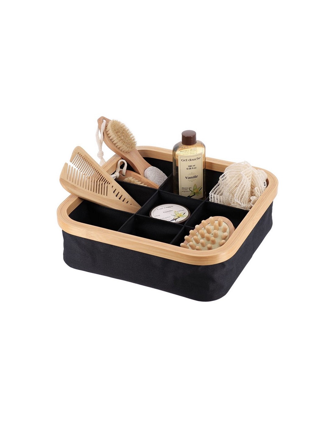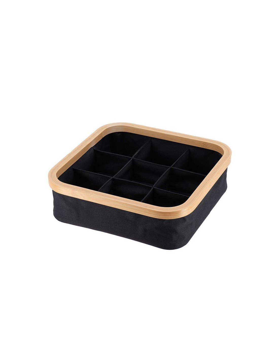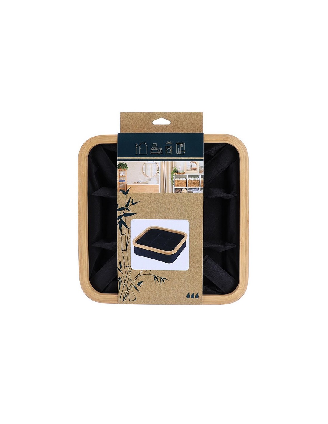 Cesta plegable TENDANCE Bambú Poliéster y marco bambú. Color negro. Cuadrada con compartimentos 30x30xh.9 cm.