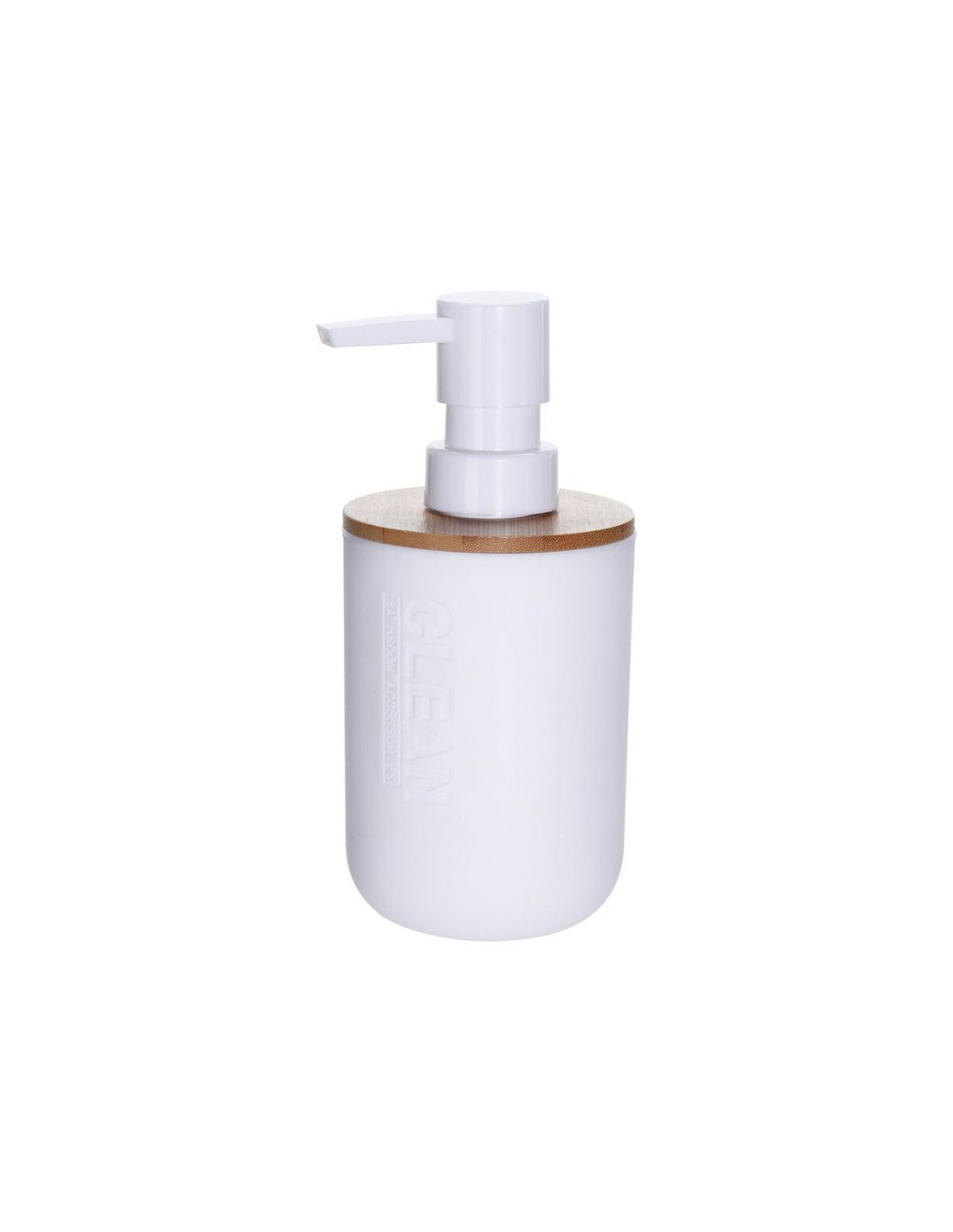 Accesorios y complementos de baño Clean Bambú y plástico blanco. Dispensador jabón.