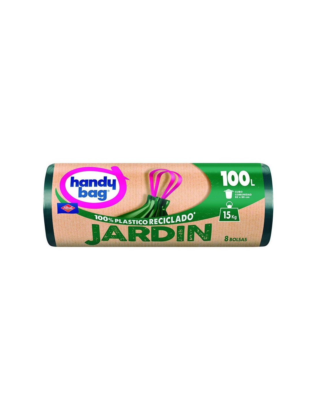 Bolsa basura ALBAL Handy Bag 100 litros 100 litros. Antigoteo. 100% plástico reciclado. Autocierre. 8 bolsas. Jardín.