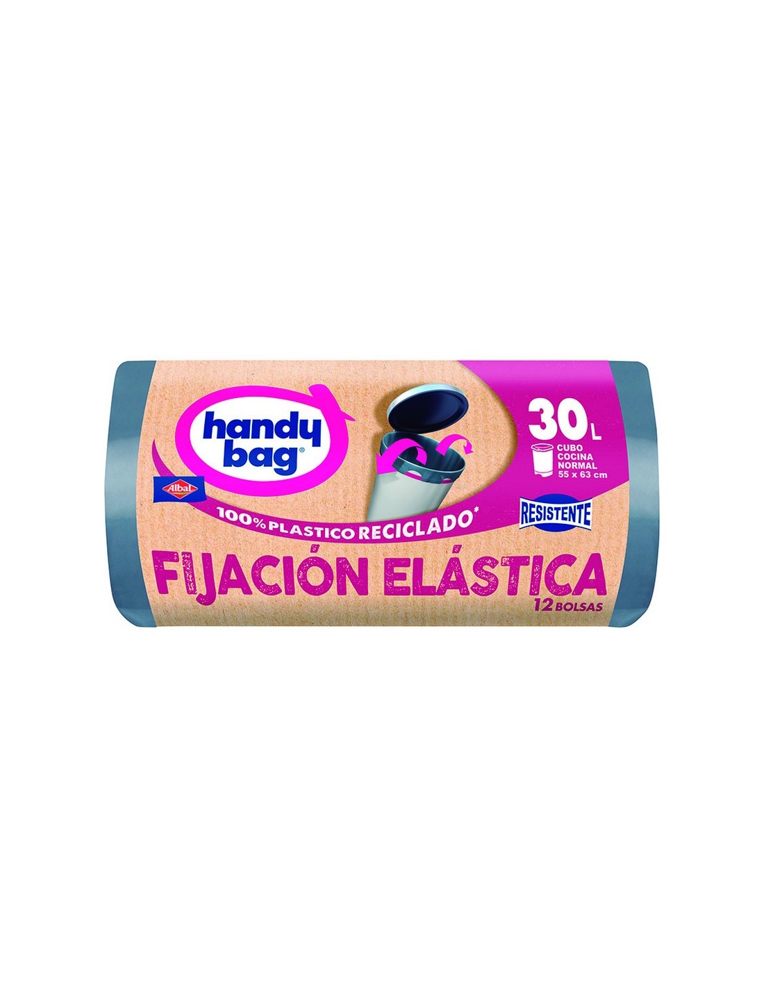 Bolsa basura ALBAL Handy Bag 30 litros 30 litros. Extra Resistente. Antigoteo. 100% plástico reciclado. Autocierre. Elástica. 12 unid.