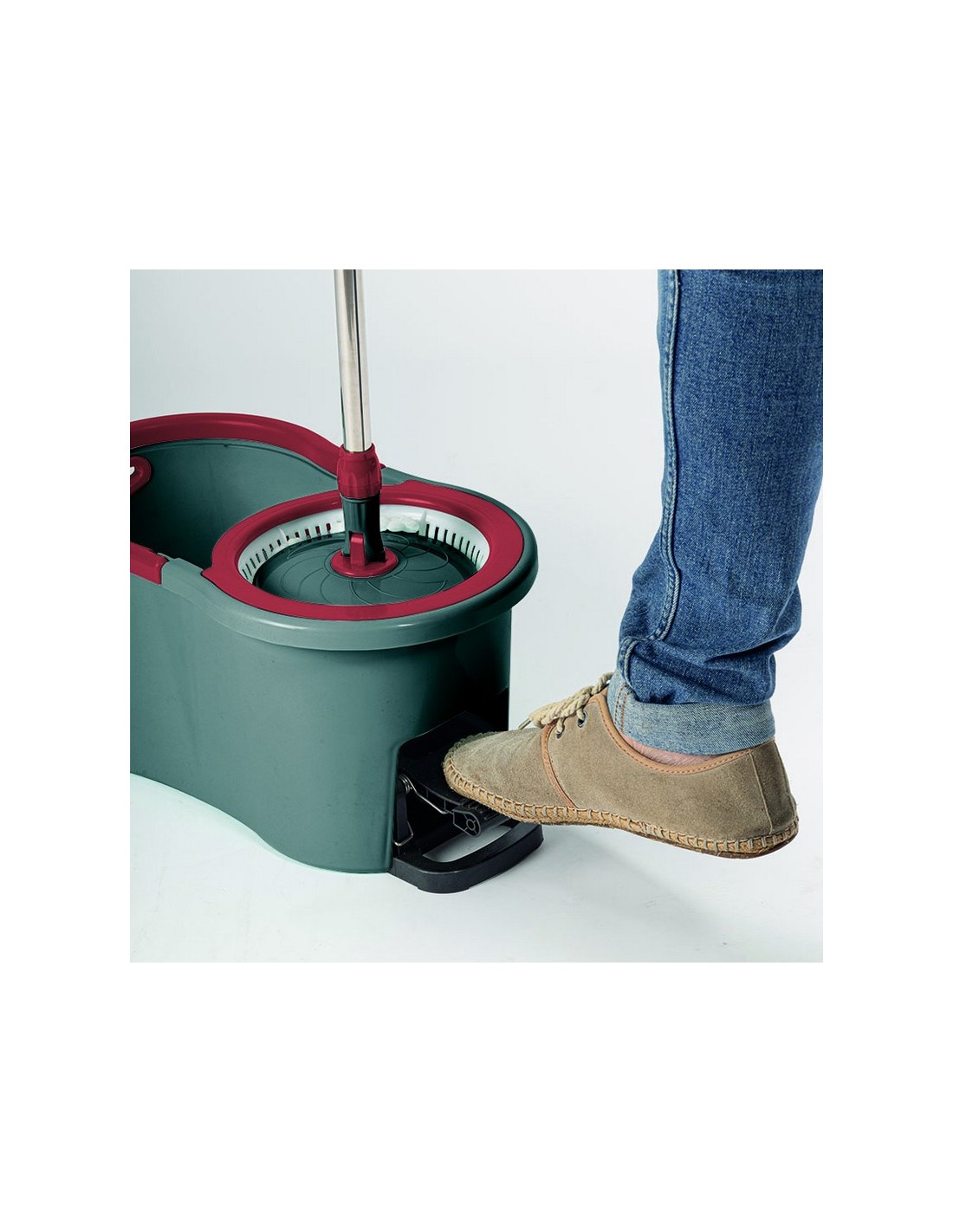 Conjunto de fregar con pedal HABITEX Rex 100% polipropileno + acero inoxidable + poliéster + cesta plástico. Fregona/mopa fácil de escurrir gracias a la fuerza centrífuga que deja el mocho extraseco. Palo 120 cm. 5 litros.