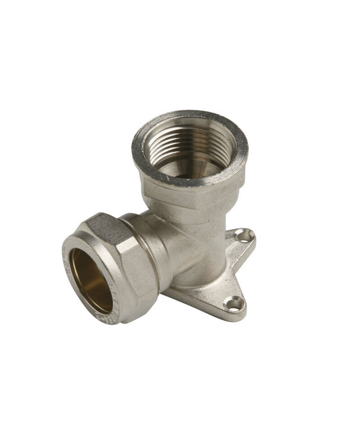 Accesorios latón compresión MT Latón niquelado. Codificación unitaria con EAN13. Codo placa. 15x1/2\".