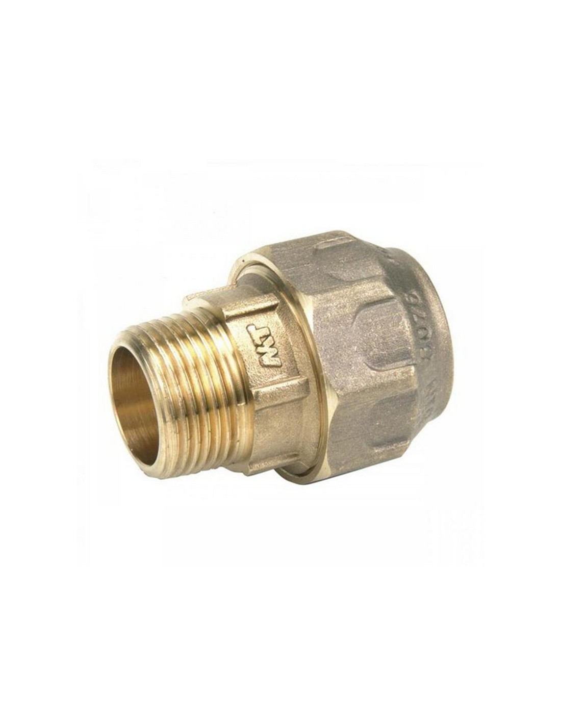 Accesorios compresión tubería PE MT serie ligera Latón a compresión para tuberías de polietileno de baja y alta densidad. Cuerpo y tuerca fabricados en latón en acabado arenoso. Soportan una presión de 16 bar y temperatura máxima de trabajo de 90ºC. Codificación unitaria con EAN13. Racor recto PE/M. 40x11/4\".