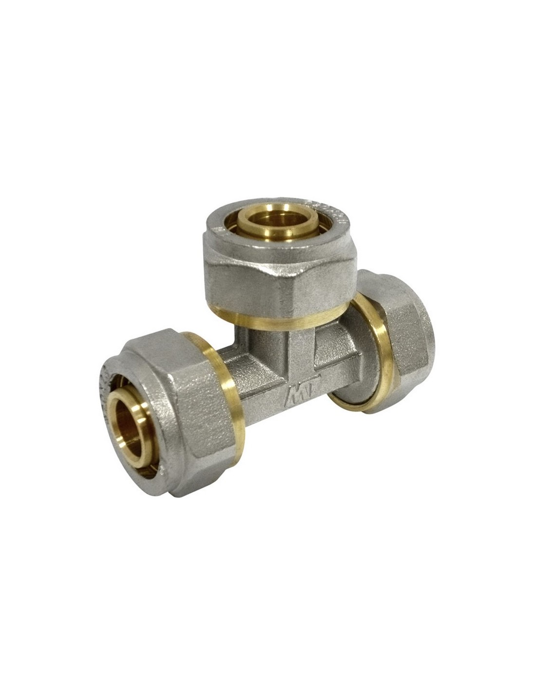 Te compresión tubería multicapa y PEX MT Cuerpo de latón, perfil dentado, temperatura de trabajo 95º a 10 bar. 25 mm. 5 unid.