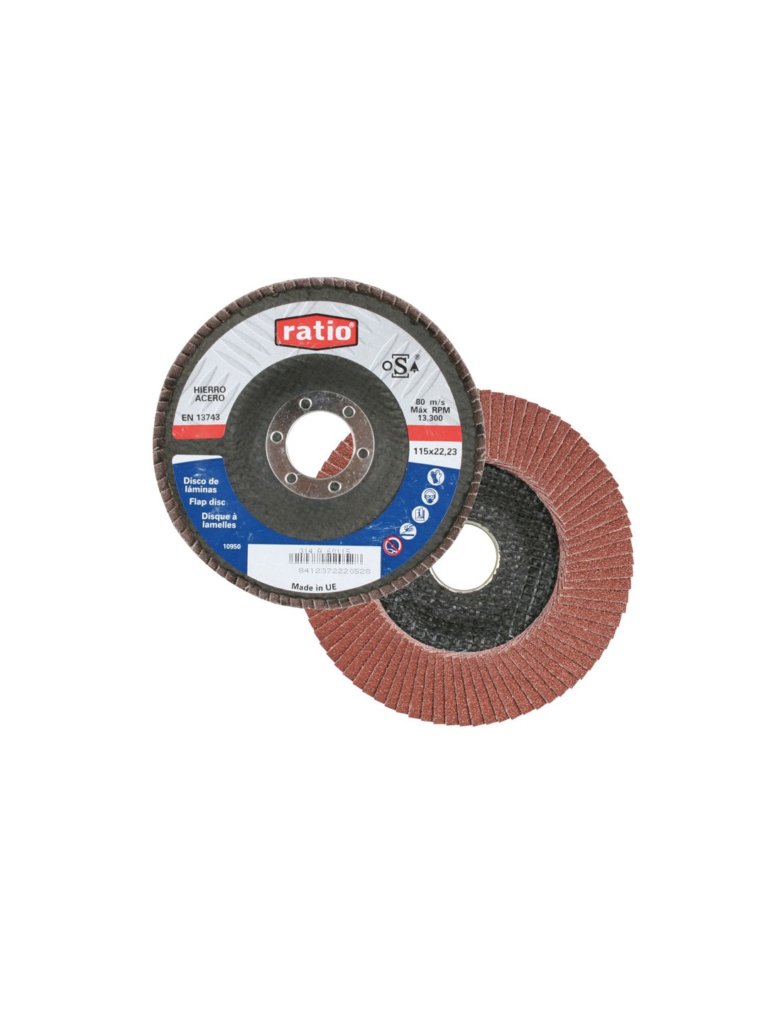 Disco abrasivo láminas RATIO. Corindón. Para hierro, madera. 115x22 mm. Grano 80.