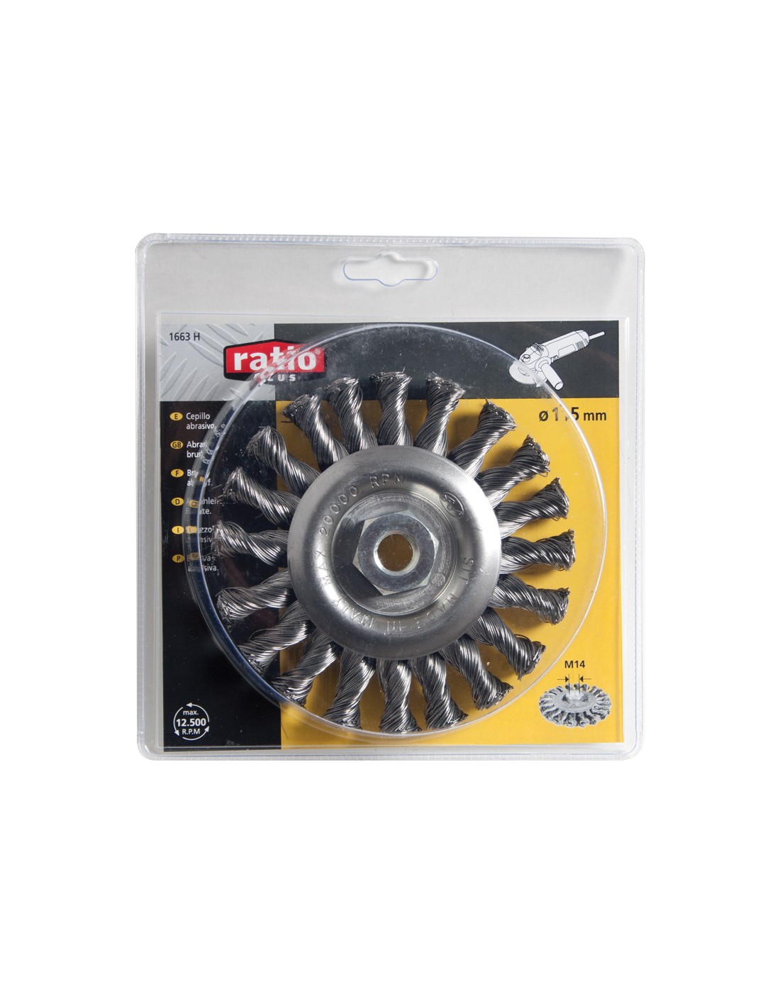 Cepillo circular RATIO. Alambre trenzado. Acero templado. Casquillo roscado M14. ø púas 0,50 mm. ø 115 mm.