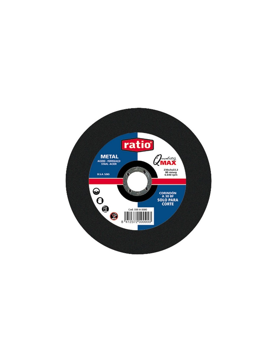 Disco corte metal RATIO Quality Max. Corindón A30-BF. 115x2,5x22,2 mm.