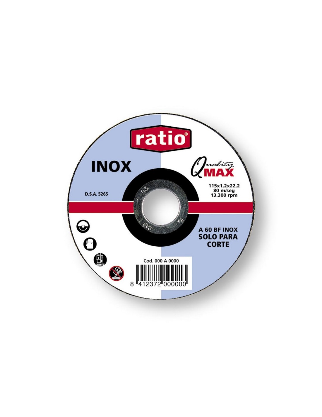 Disco corte inox/metal RATIO Quality Max. Corindón A60-BF inox. Para chapa y perfiles finos en acero y acero inox. 115x1,0x22,2 mm.