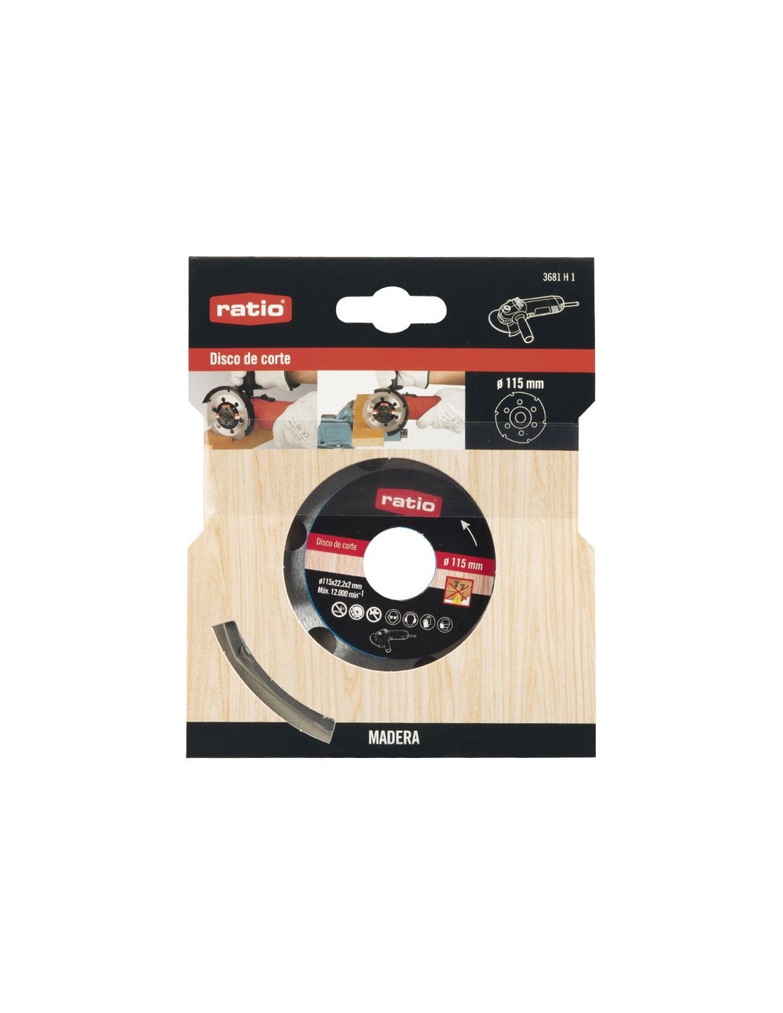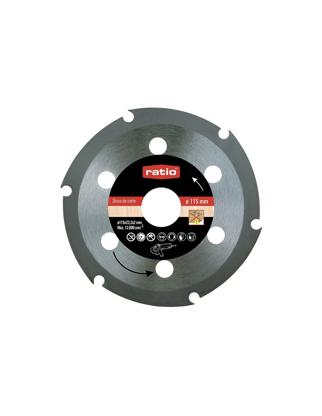 Disco corte madera RATIO Conexión a amoladoras. Para fresar, cortar y biselar la madera, trabajar en PVC y plásticos. Norma EN 847-1:2013. ø 115x2,0x22,2 mm.
