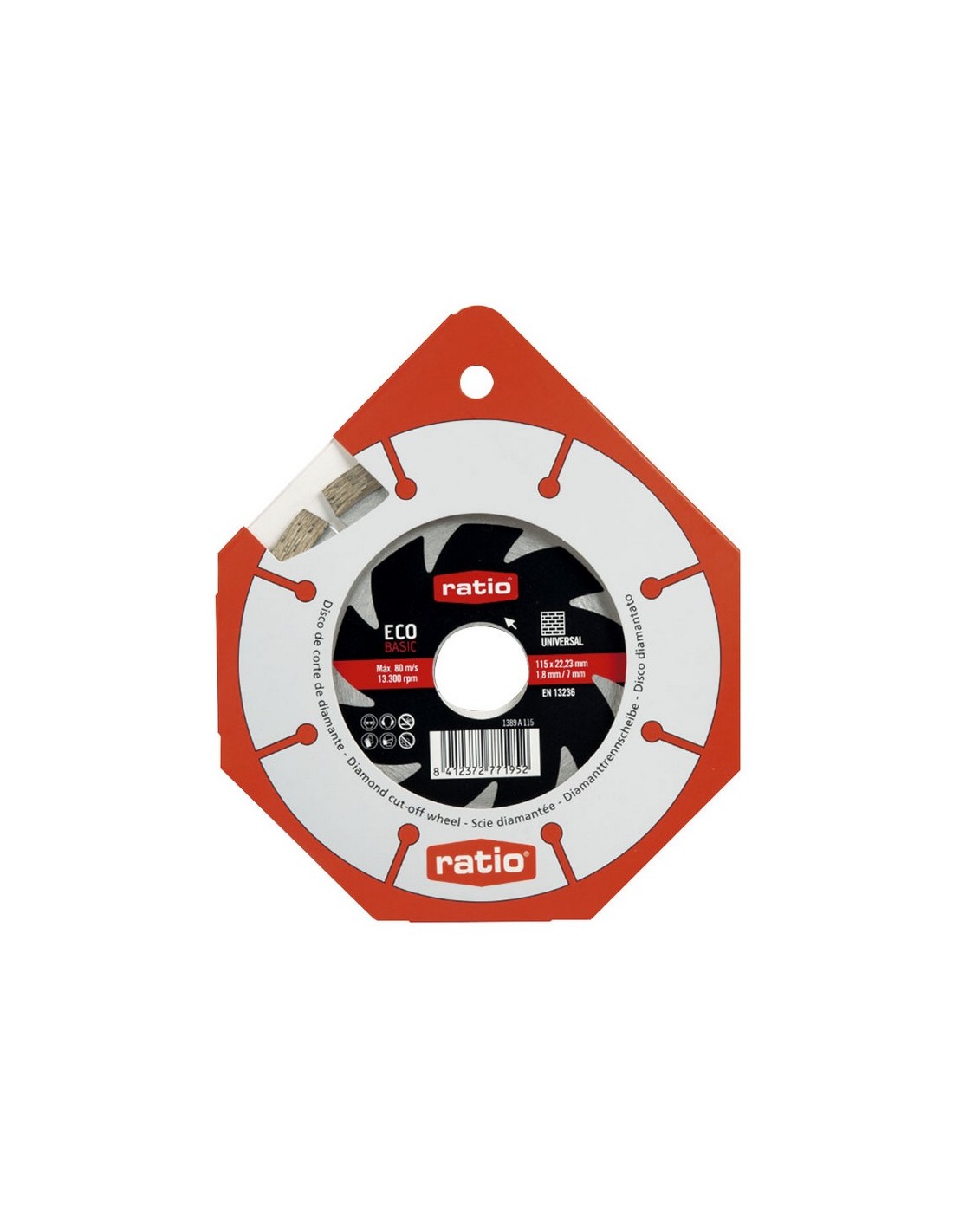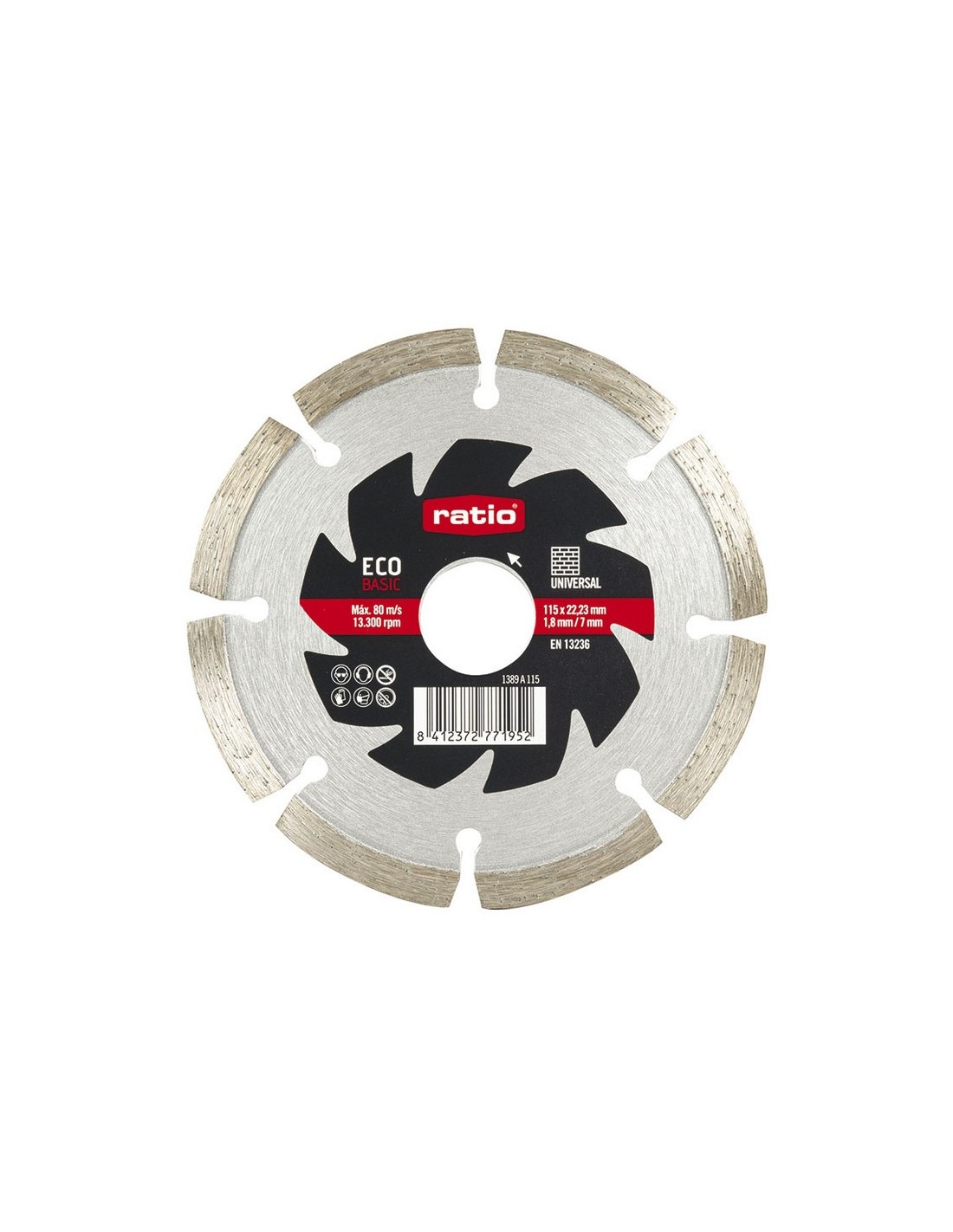 Disco diamante RATIO Eco Basic Láser segmentado. Uso general en materiales de construcción. ø 115x1,8x22,23 mm.