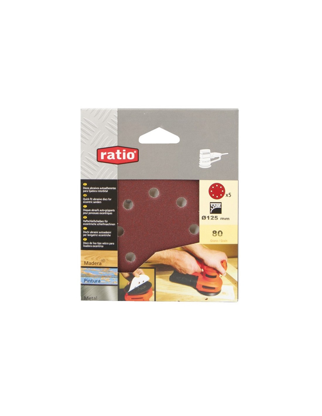 Disco abrasivo lijadora rotorbital RATIO (Pex). Autoadherente. Óxido de aluminio. Juego 5 unidades. ø 115 mm. Grano 40.