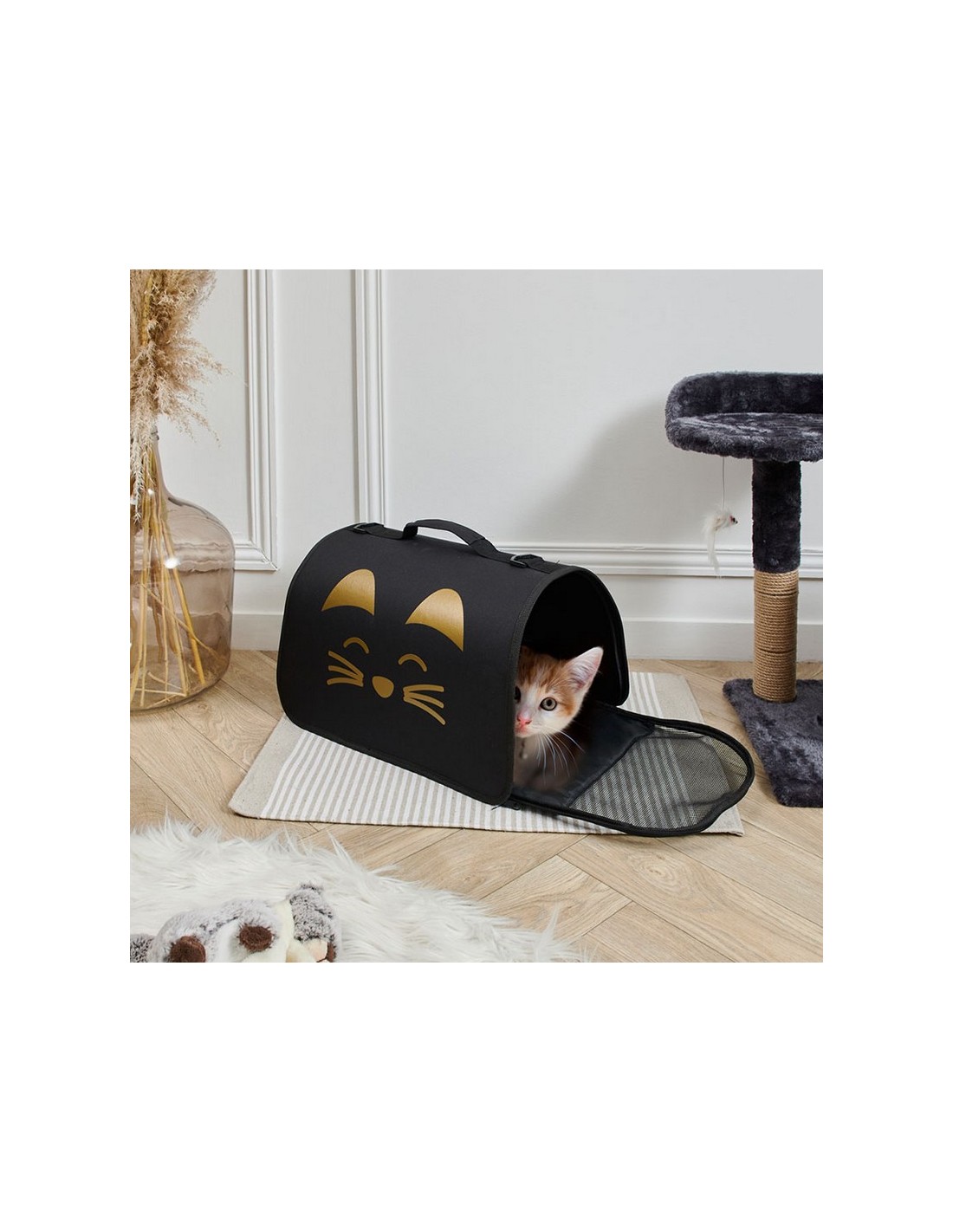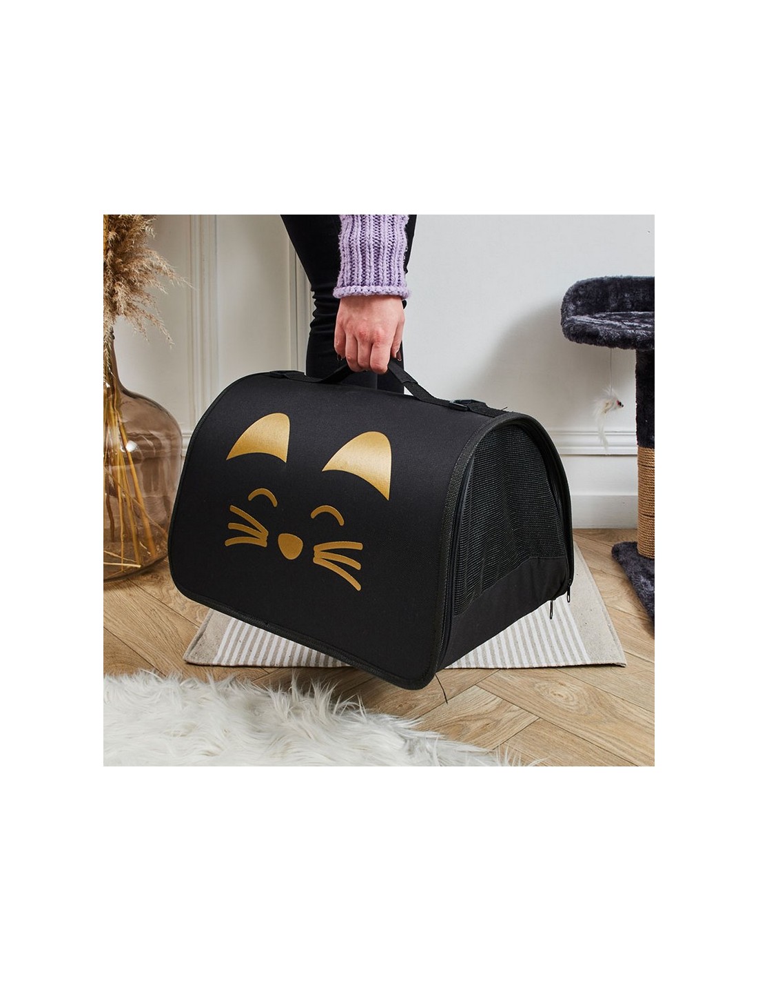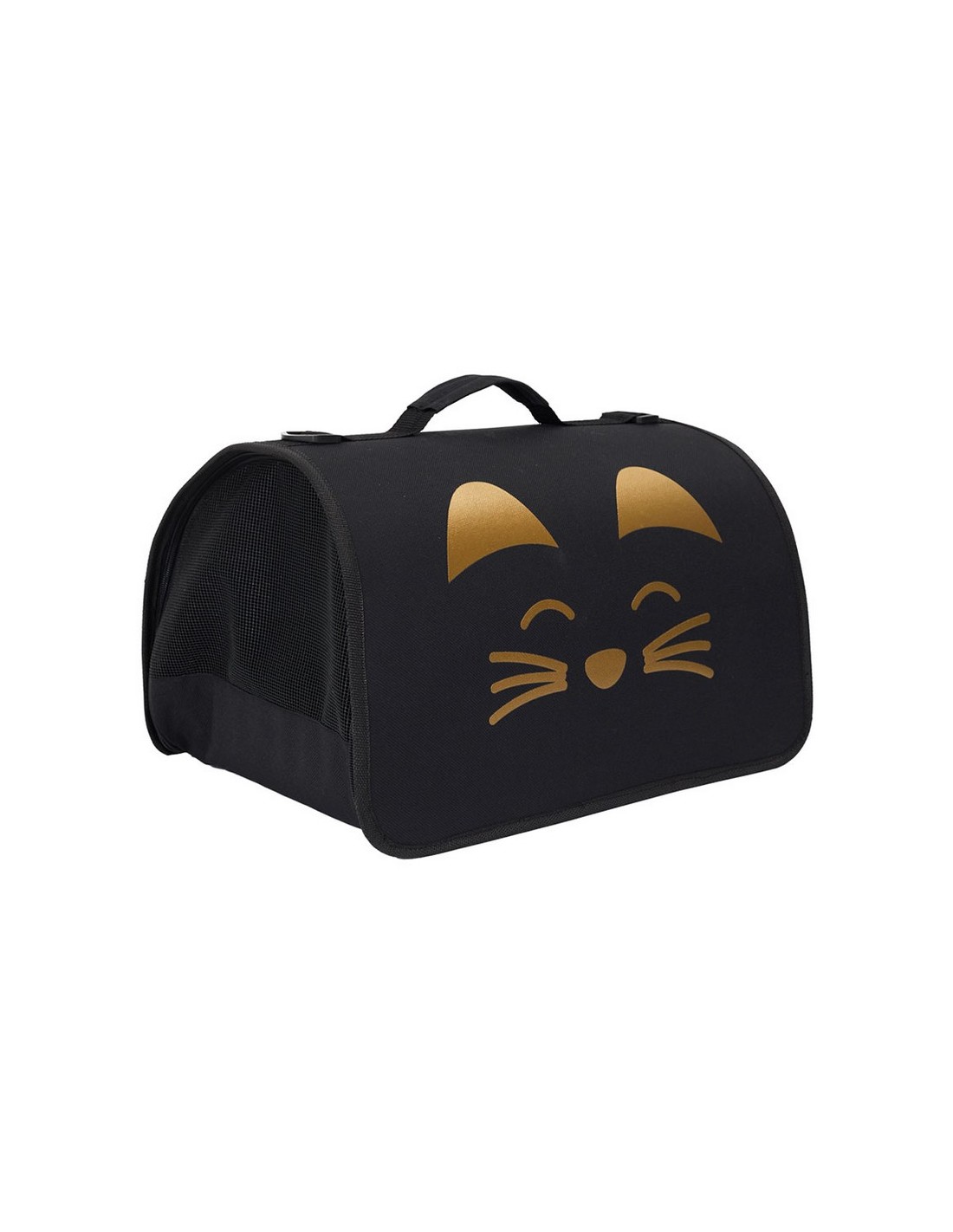 Transportin gato plegable Color negro. Impresión gato dorado. Dimensiones: 40x66xh.25 cm