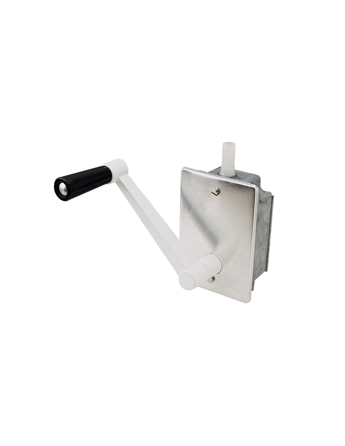 Torno persianas enrollables Empotrable. 40 kg. Caja, placa, mecanismo, manivela y tornillos incluidos. Placa aluminio. Plata.