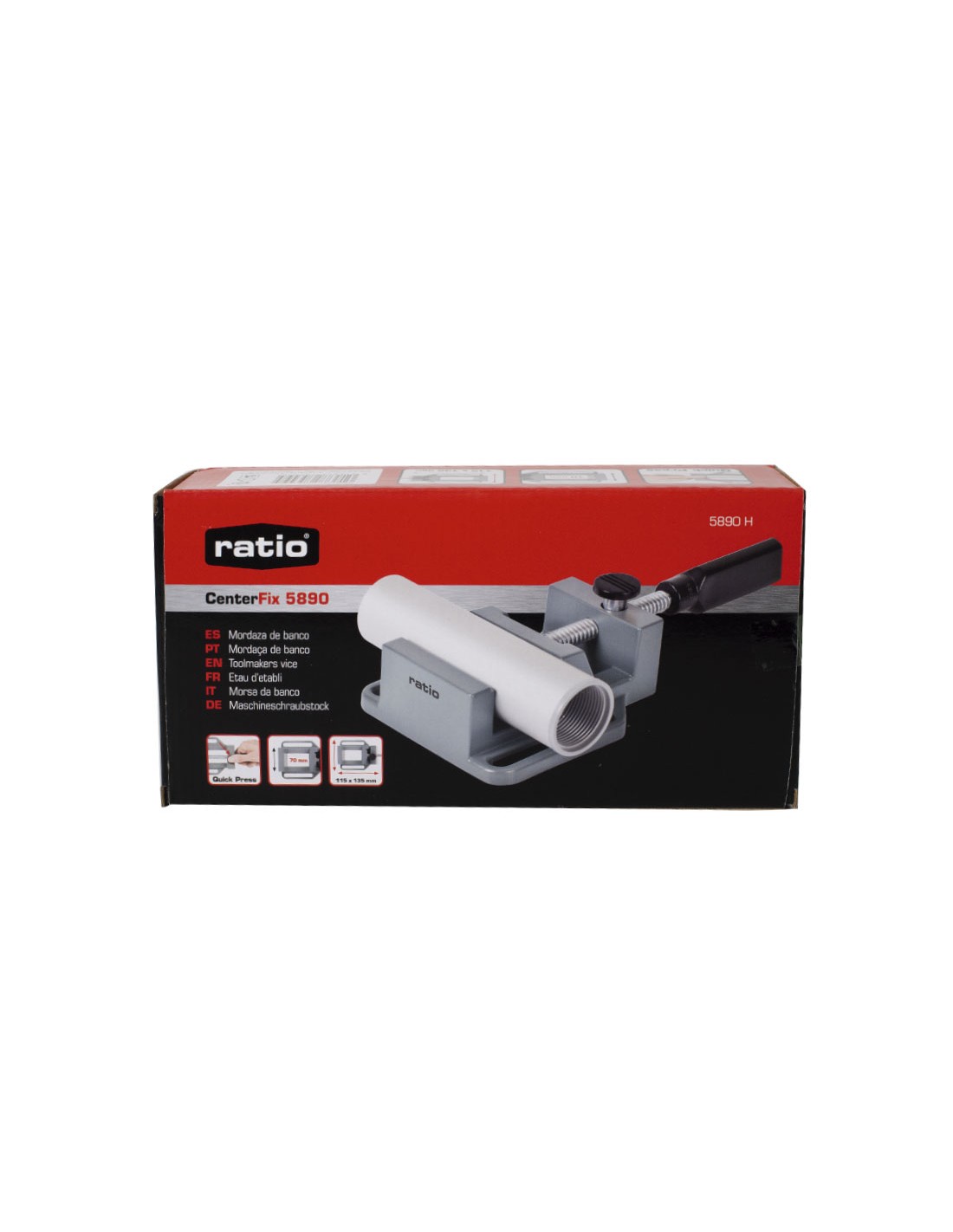Mordaza de banco RATIO 5890 Mordaza de sujeción con ajuste rápido. Ranura horizontal y vertical para sujetar material redondo. Fundición de aluminio. Máxima apertura 65 mm.. Mordazas 70 mm.
