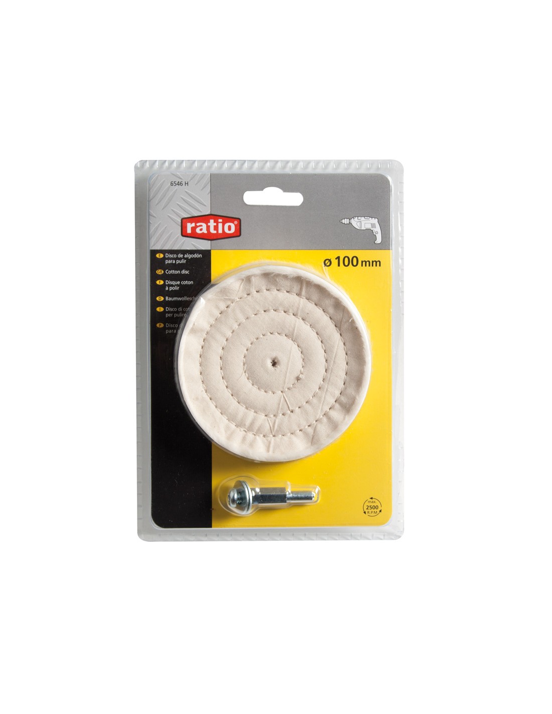 Disco de algodón RATIO. Eje 6 mm. incluido. ø 100 mm.