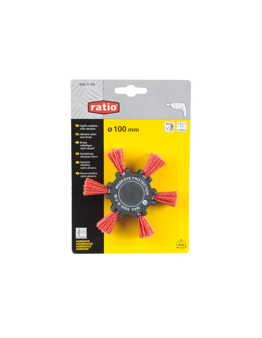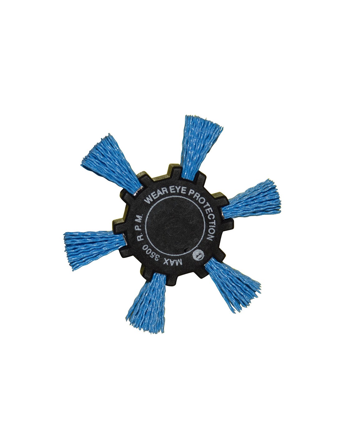 Cepillo aspa RATIO. Nilón/corindón. Vástago 6 mm. ø 100 mm. Azul, fino.