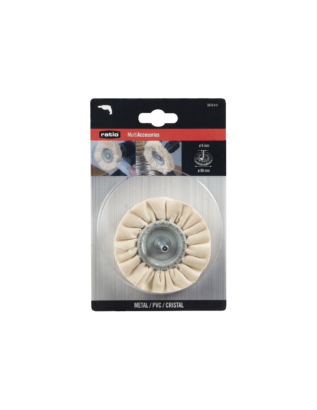 Disco para pulido RATIO Para abrillantar metales, PVC y cristal. Tela ø 80 mm. Vástago ø 6 mm.