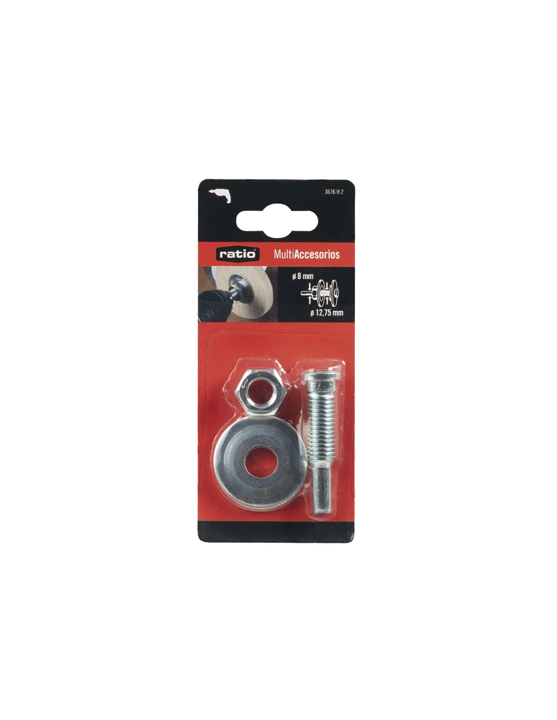 Eje adaptador porta útiles RATIO Perno fijación par discos abrasivos y de abrillantado. ø 12,75 mm. Vástago ø 8 mm.