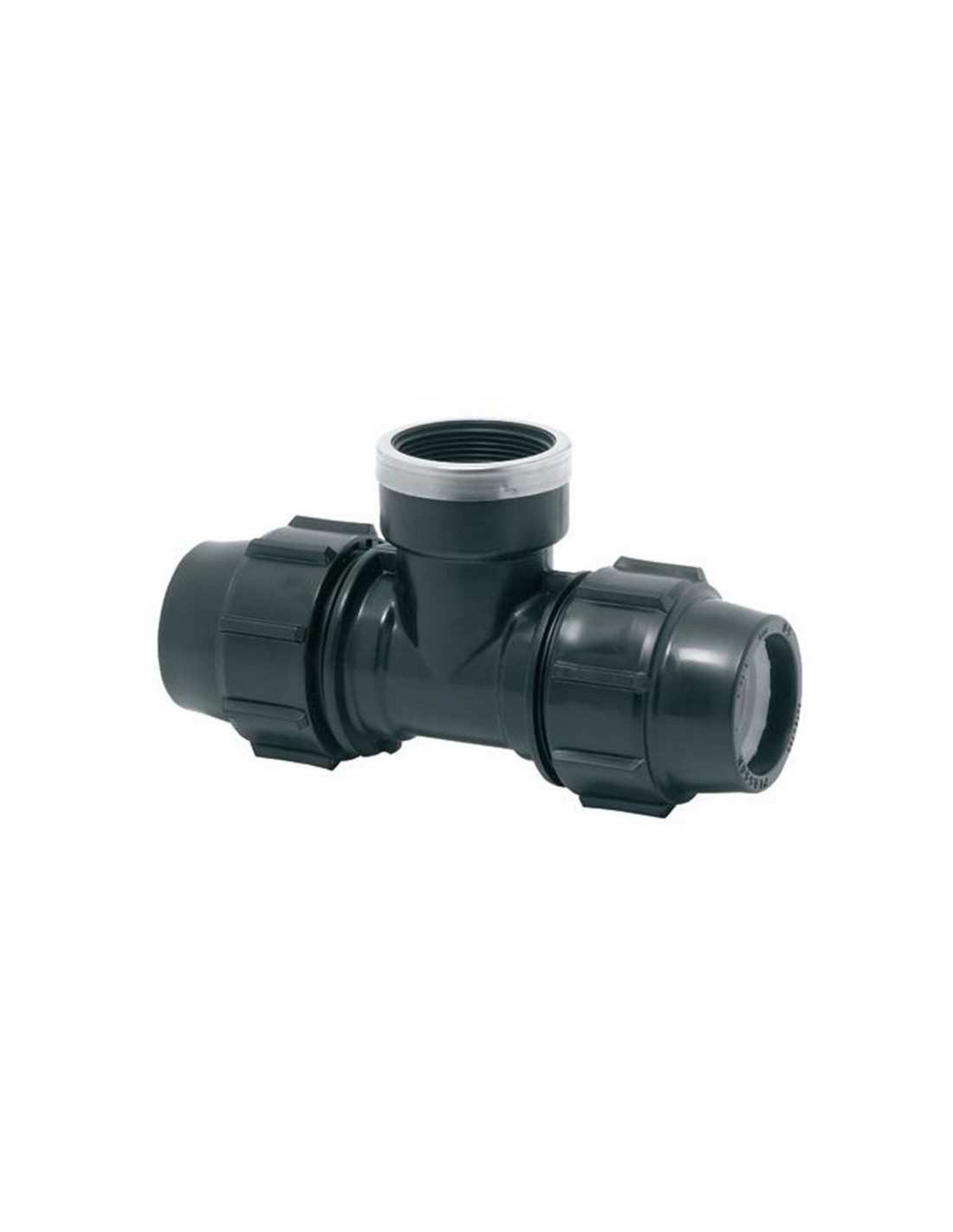 Accesorios de compresión para circuitos de agua PLASSON Serie 6 Para circuitos de agua potable. Material homologado por todas las compañías de agua de España. Fabricación Presión máx. 16 Bar. Fabricado en polipropileno block de alta calidad con juntas tóricas de nitrilo NBR y casquillos de Acetal POM que garantiza 100% estanqueidad. Cumple normas europeas con ensayos que garantizan 50 años de vida. Te mixta rosca hembra. 63 mm. 1 unid.