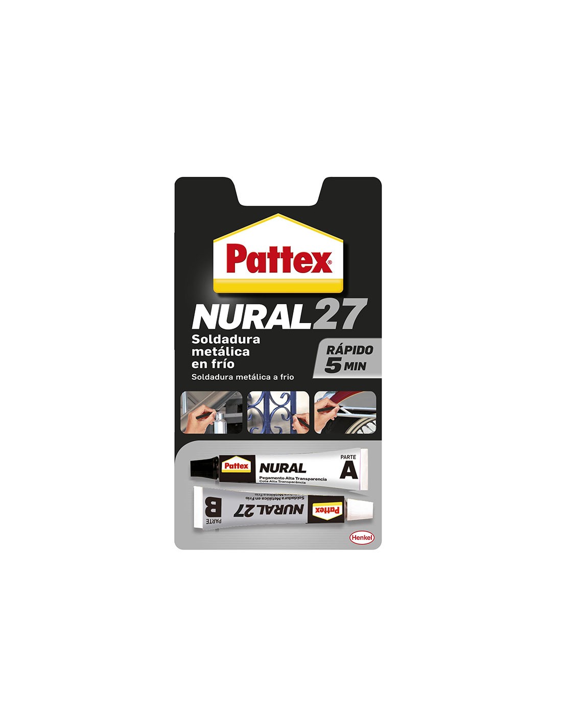 Adhesivo reparador PATTEX Nural 27. Soldadura reparadora super rápida. Resistencia -30º C/ 150º C. 22 cc.