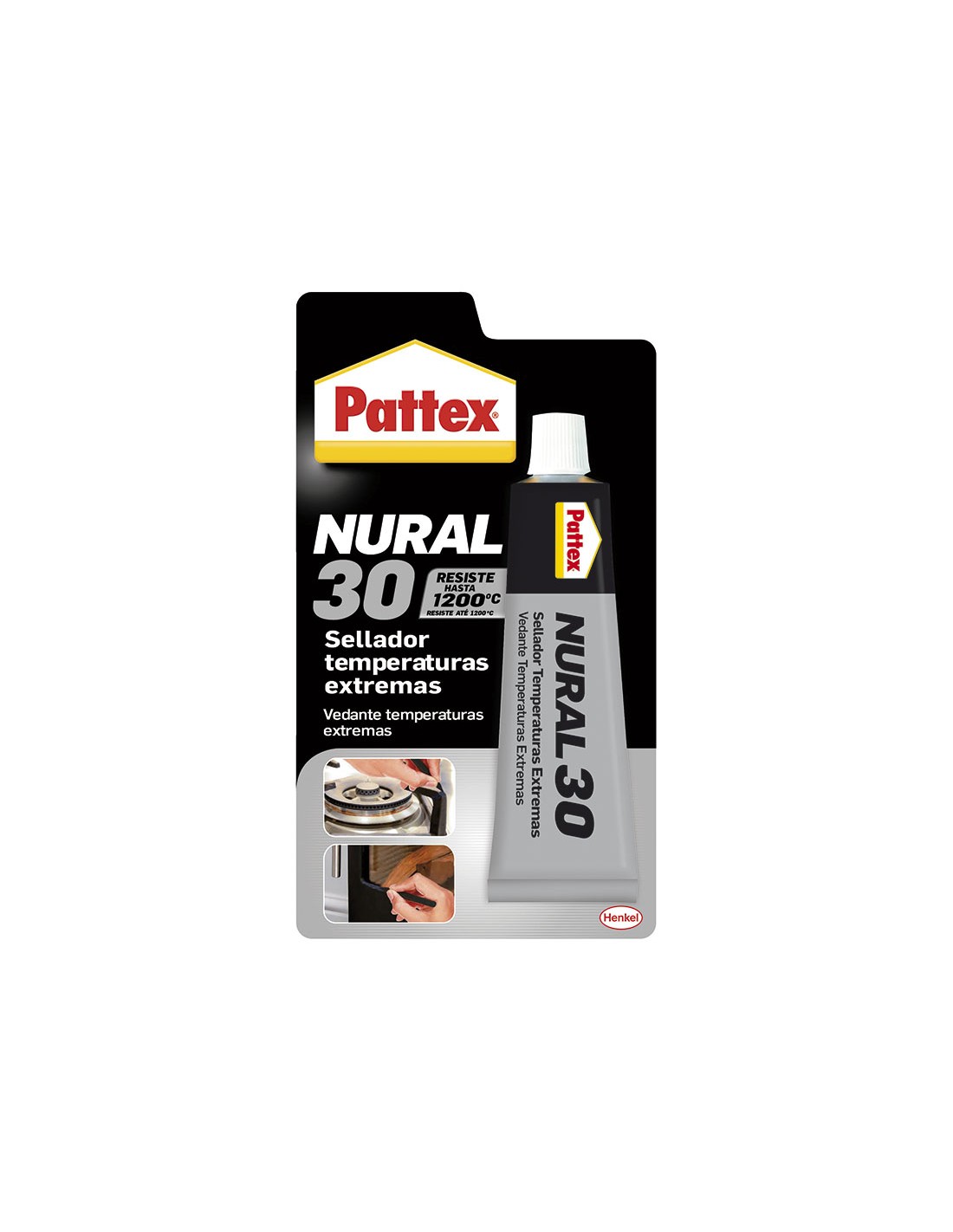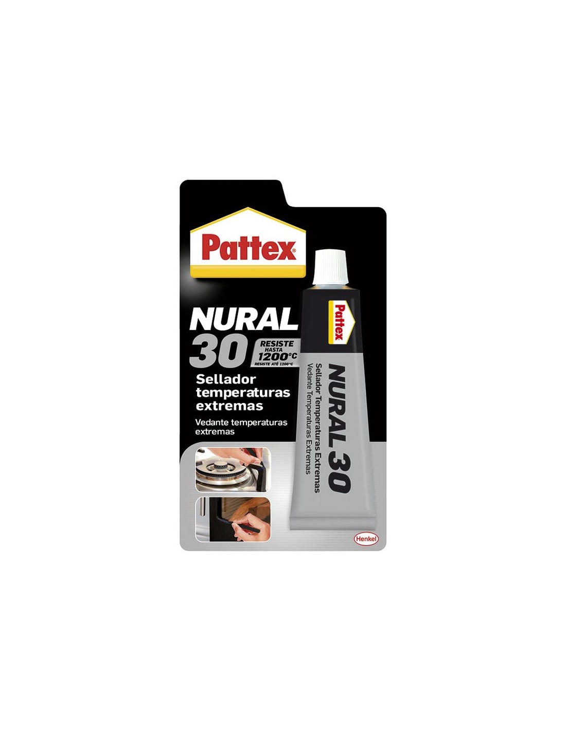 Adhesivo PATTEX Nural 30 Masilla adhesiva a base de silicatos, formulada en especial para el sellado rígido de uniones, grietas o fisuras que tengan que soportar altas temperaturas. 150 gr.