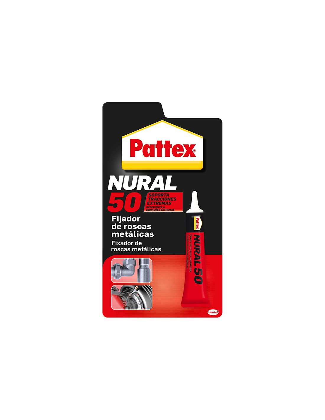Adhesivo fijaroscas metálicas PATTEX Nural 50 Tiempo endurecido 20 minutos. Resistencia entre -60º C/150º C. 10 ml.