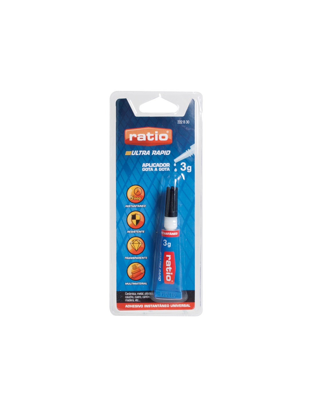 Adhesivo instantáneo RATIO universal. Pegado rápido y extrafuerte. 3 gr.