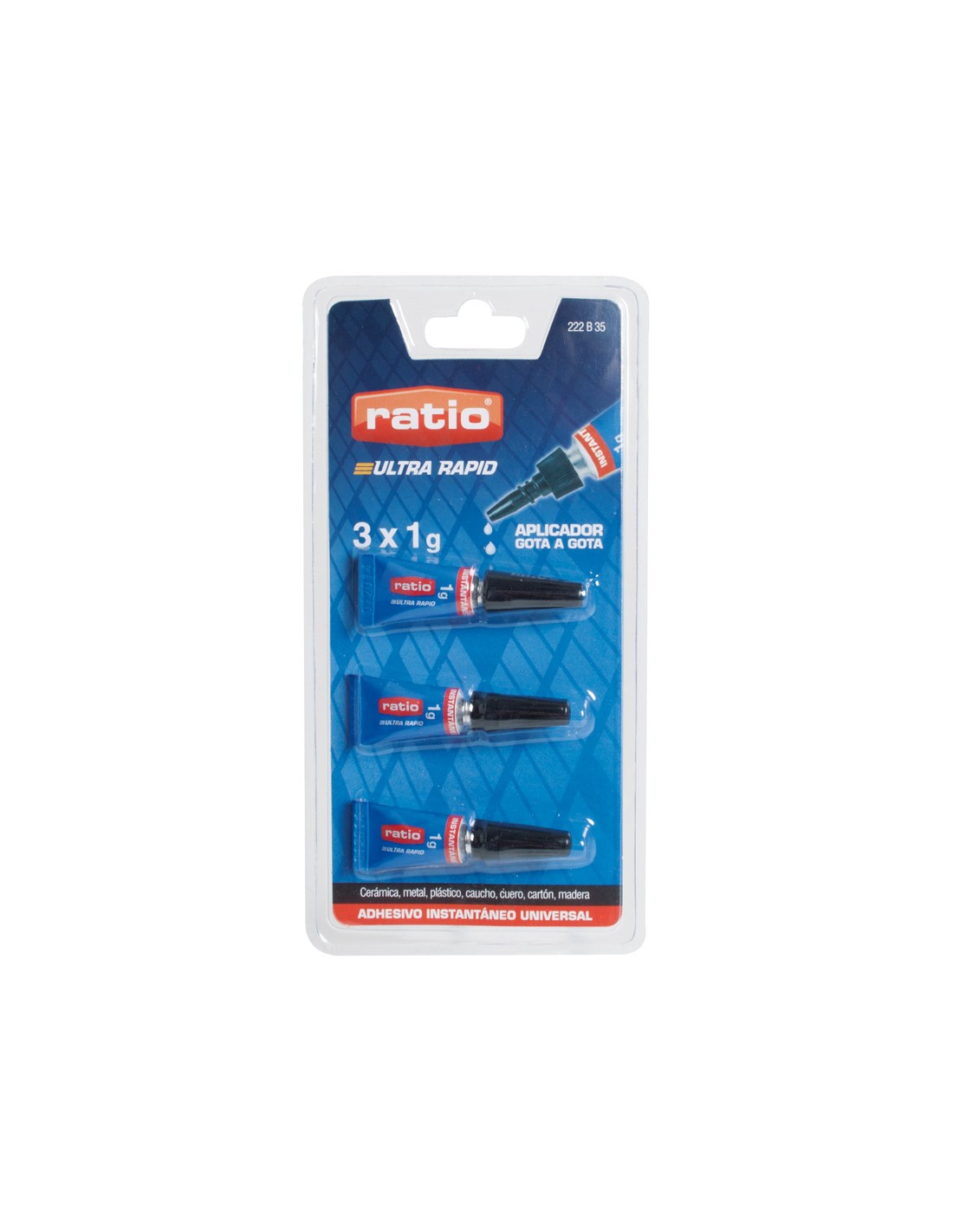 Adhesivo instantáneo RATIO universal. Pegado rápido y extrafuerte. 3x1 gr.