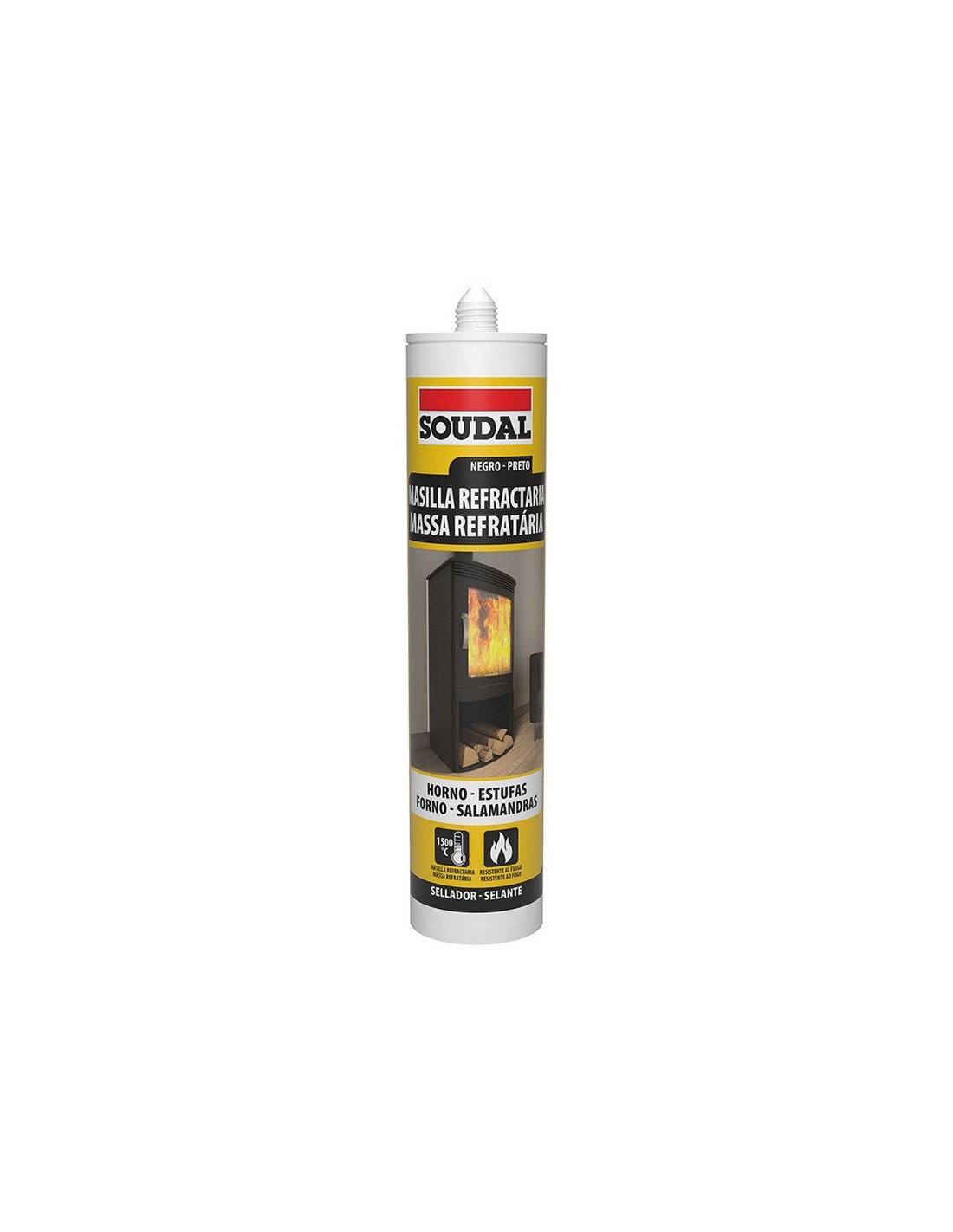 Sellador refractario SOUDAL. Ideal para sellados de estufas, hornos y otros elementos sometidos a altas temperaturas en juntas de movimiento. Resiste hasta 1500 ºC. 300 ml.