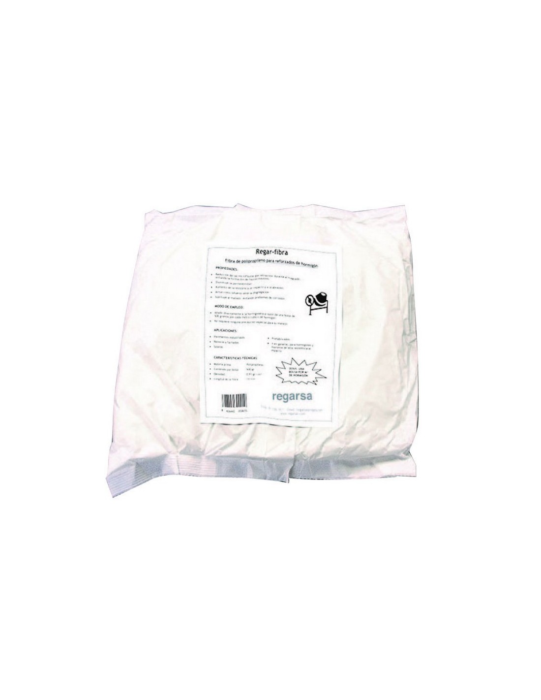 Fibra de polipropileno para hormigón REGARSA Fibra en multifilamento de polipropileno. Para adicionar a morteros y hormigones con el fin de disminuir la fisuración, aumentar su durabilidad y resistencia al impacto, así como mejorar la resistencia a tracción y compresión. 500 gr.