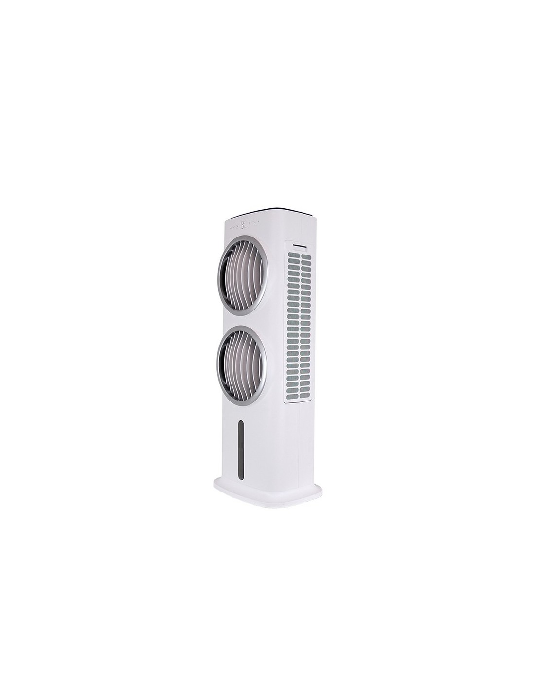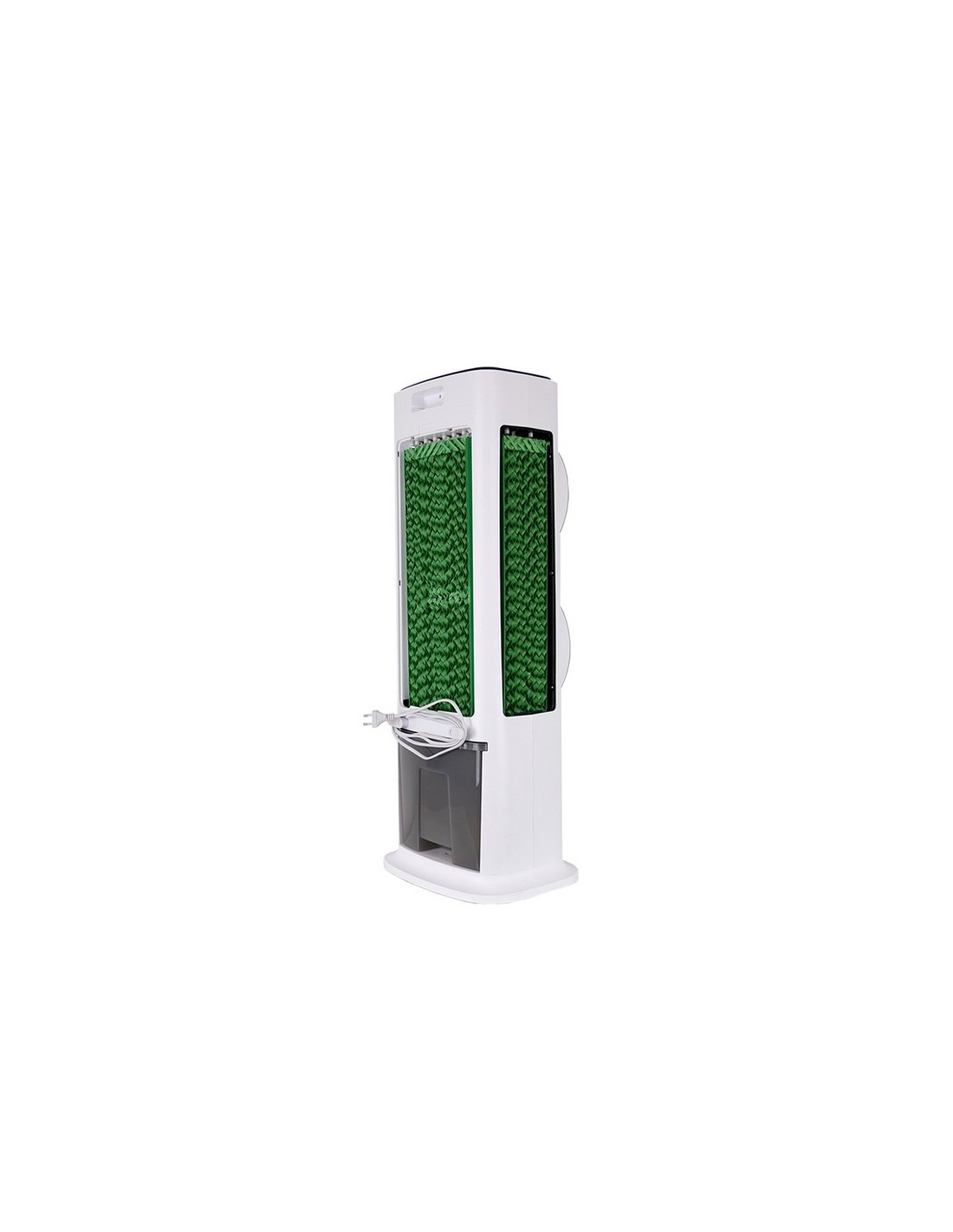 Ventilador + climatizador evaporativo MConfot Small Duo Uso doméstico. Muy silencioso. Bajo consumo eléctrico. 5 velocidades. 3 filtros y 3 prefiltros. Mando a distancia. Ionizador. Depósito extraíble. Panel táctil. 3 filtros de enfriamiento. Display Led. Temporizador 1-9h. Ruedas ocultas. Potencia: 90 W.