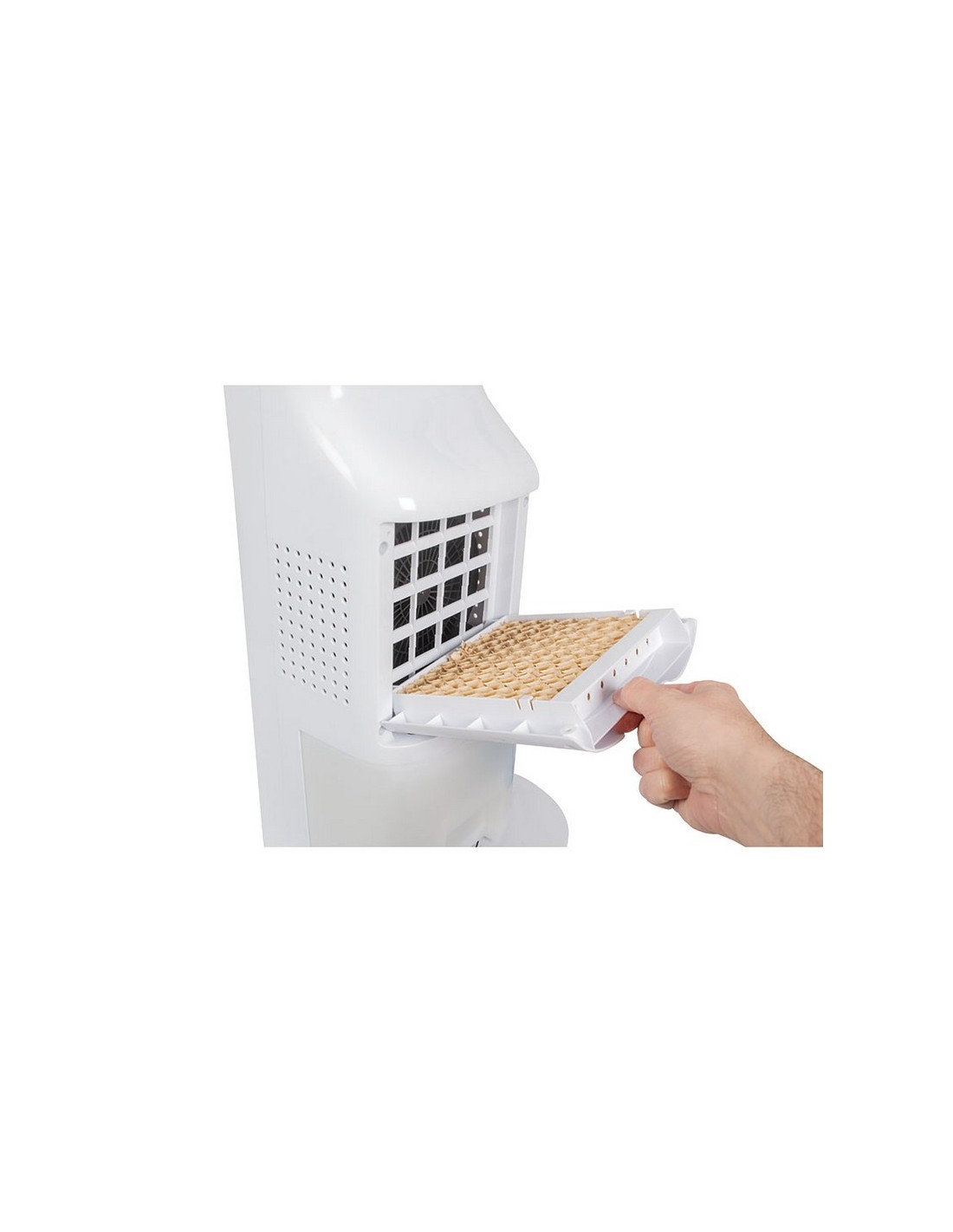 Climatizador evaporativo HABITEX VC-15 3 velocidades. Función oscilante 70º. Mando a distancia. 3 modos: normal, brisa y noche. Display digital. Incluye dos depósitos congelables. Fácil instalación y mantenimiento. 65 W.