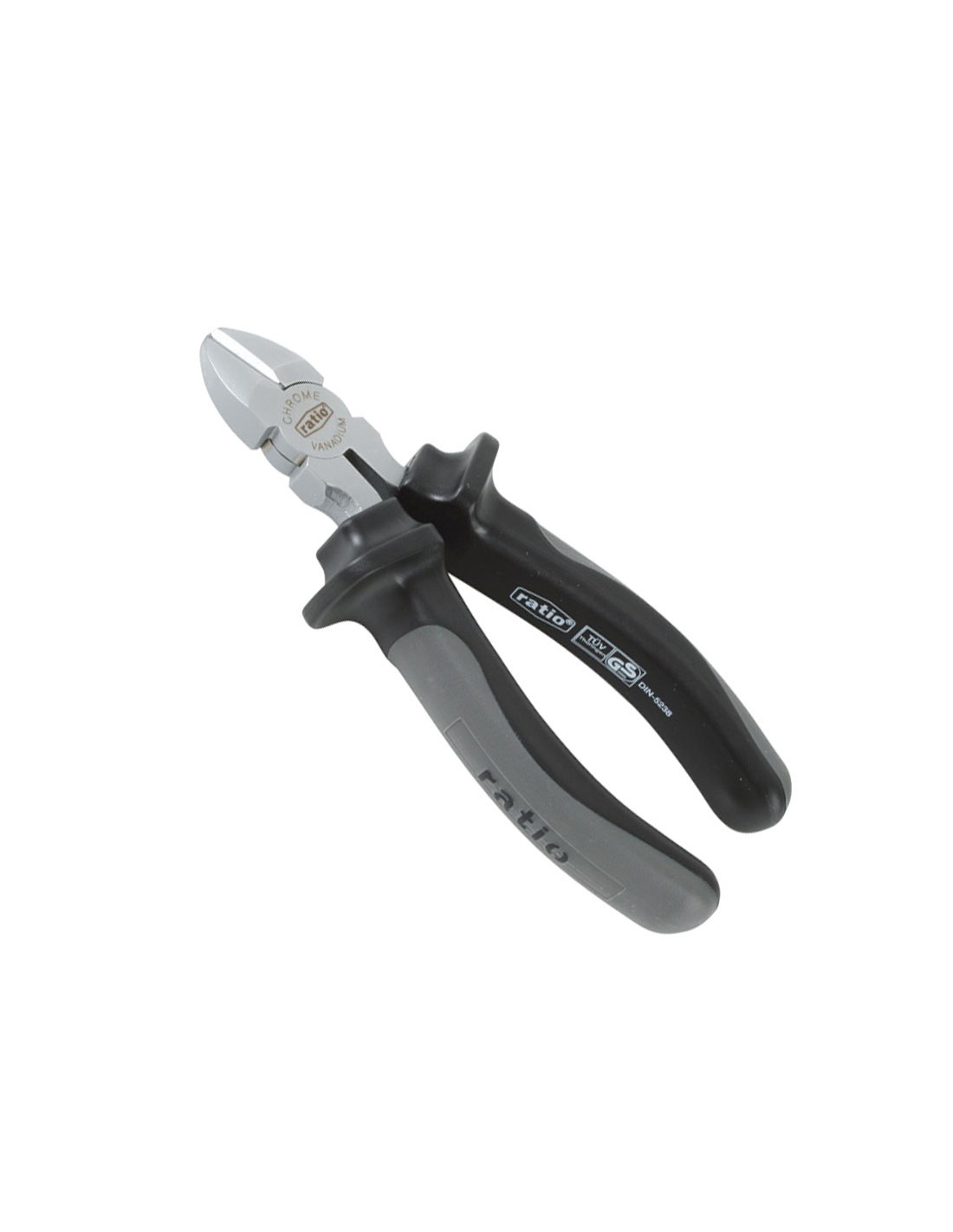 Alicates RATIO serie 6000 Acero cromo-vanadio satinado. Tratamiento de inducción en zonas de corte. Mango antideslizante bimaterial. Corte diagonal. 160 mm.