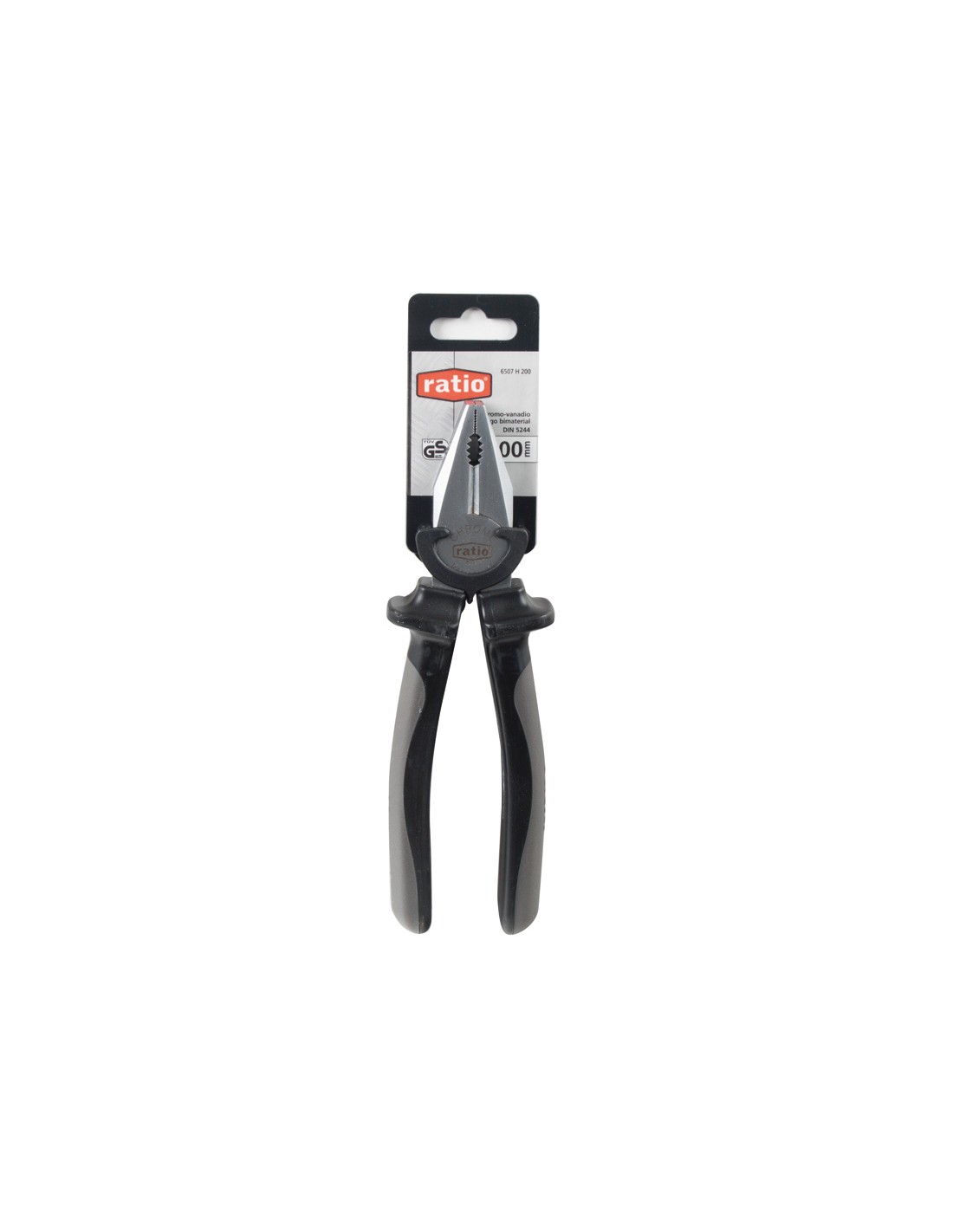 Alicates RATIO serie 6000 Acero cromo-vanadio satinado. Tratamiento de inducción en zonas de corte. Mango antideslizante bimaterial. Universal. 200 mm.