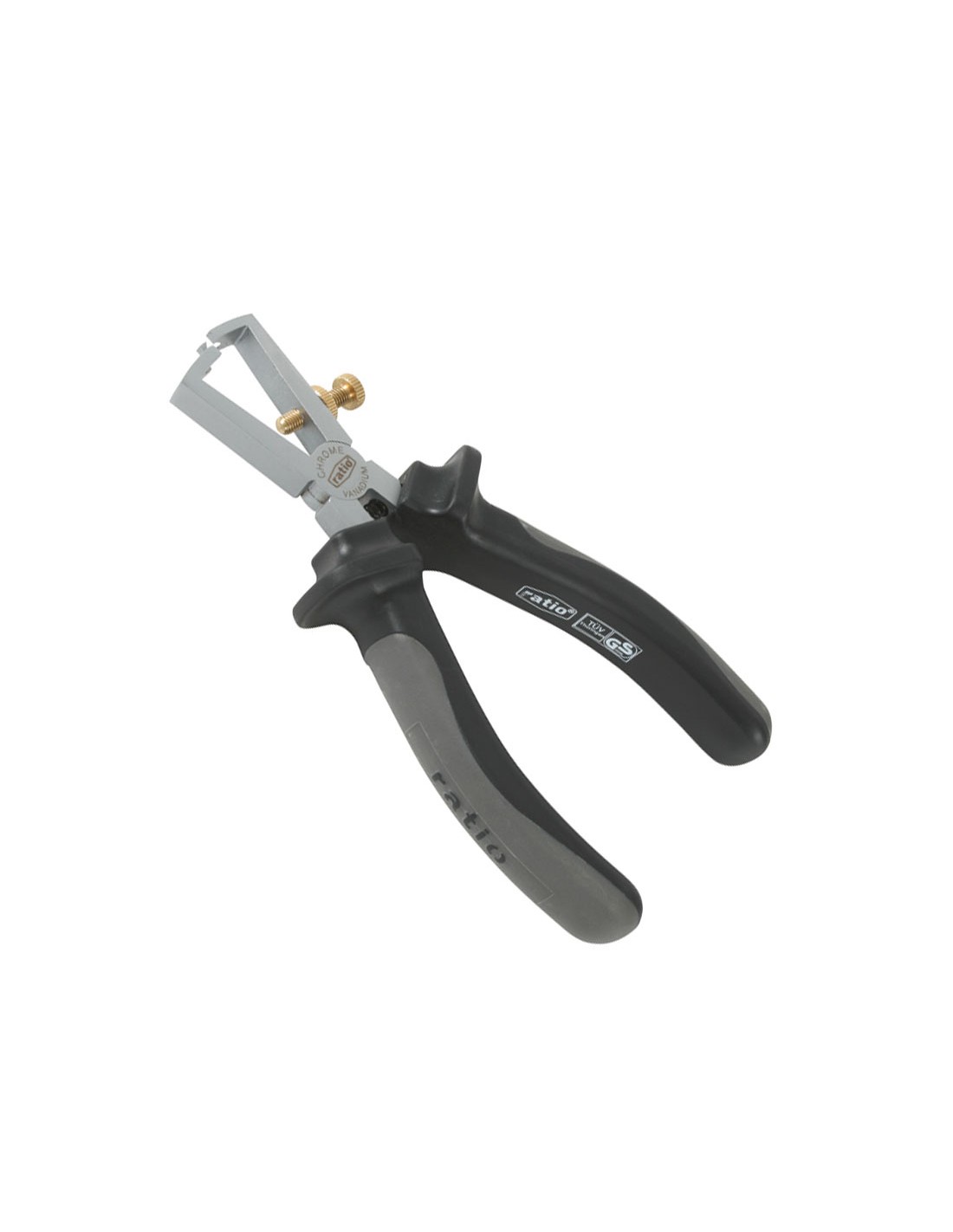 Alicates RATIO serie 6000 Acero cromo-vanadio satinado. Tratamiento de inducción en zonas de corte. Mango antideslizante bimaterial. Pelacables tipo V. 160 mm. Resorte ajustable.