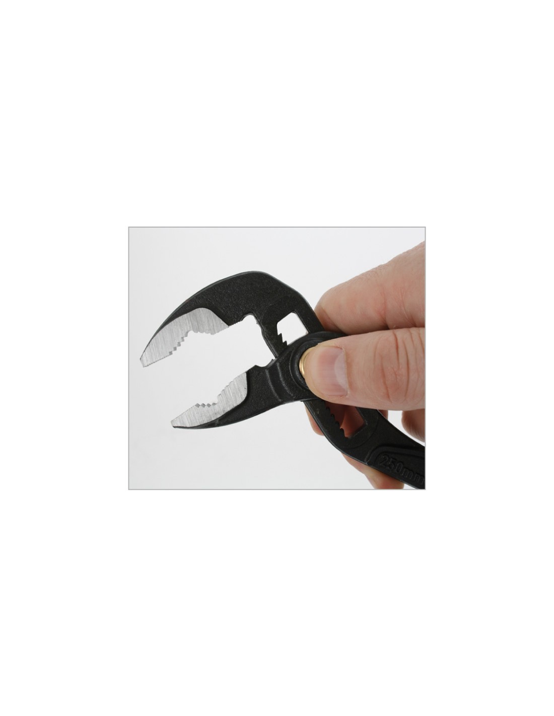 RATIOPROSERIESAlicate pico loro de ajuste rápido RATIO ProSeries Selección de abertura rápida y precisa mediante pulsador. Bocas con doble tratamiento térmico para mayor durabilidad 62 HRc. Cuerpo forjado en acero cromo vanadio, acabado negro pavonado. Abertura hasta 32 mm. 250 mm.