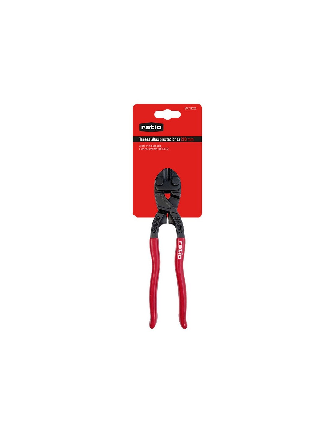 Tenaza altas prestaciones RATIO 5467 Acero cromo-vanadio con filos endurecidos (HRC58-62). Mangos plastificados. 200 mm.